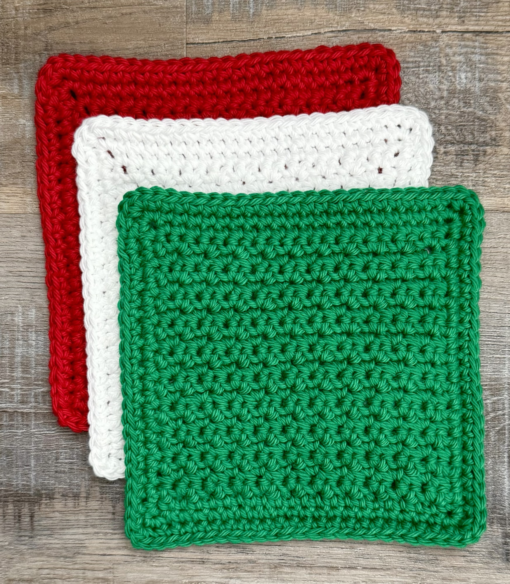 The Crochet Christmas Grit Stitch Dishcloth works up so quickly! A set in red, green, and white makes a fun hostess gift or they also make great stocking stuffers. ♥️💚🤍