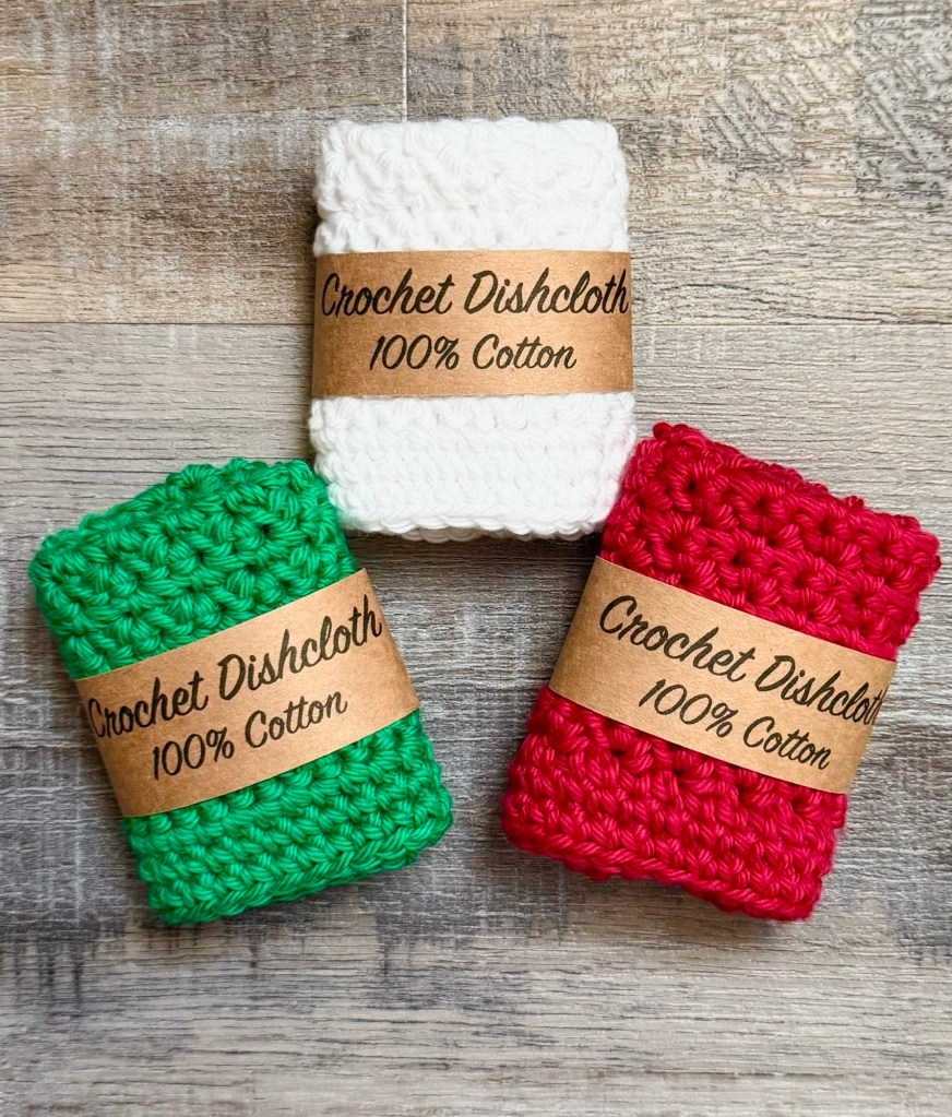 For gifting, I fold up my Crochet Christmas Grit Stitch Dishcloths and add a simple label wrap around them. I’ve created a free PDF for the label wrap and you can find it at the link below.