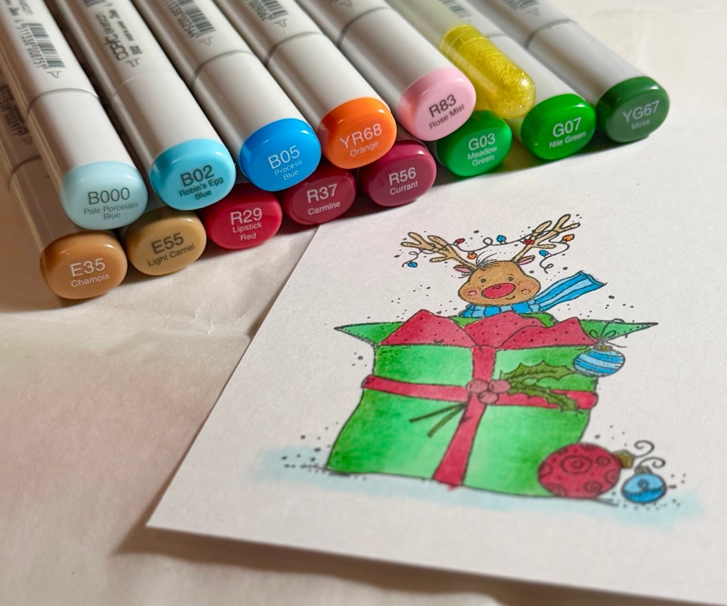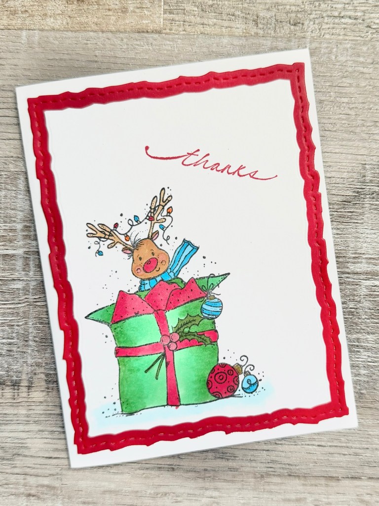 I have a sweet Christmas thank you card to share with you today. The reindeer is fun to color and the card comes together quickly. 🎄