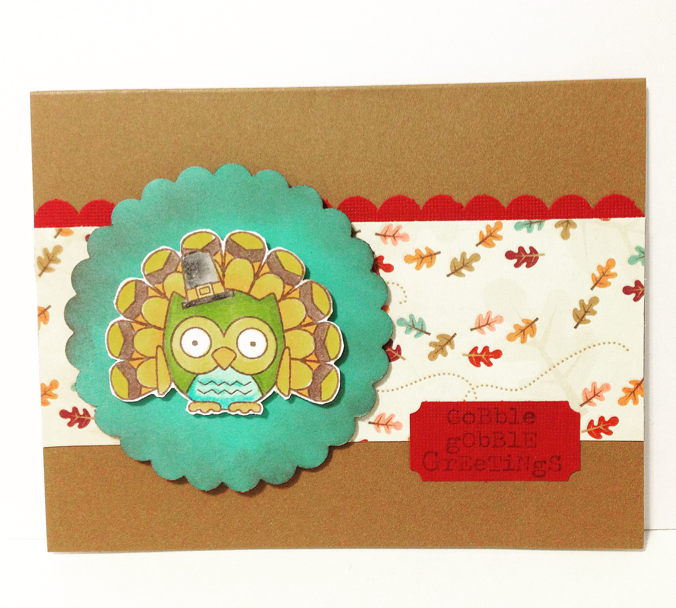 Here’s a quick and easy Thanksgiving card using the Fall Is A Hoot stamp set from Darcie’s stamps found here. These owl stamps are just too cute and they have different sets with different themes – so fun to add to your collection!