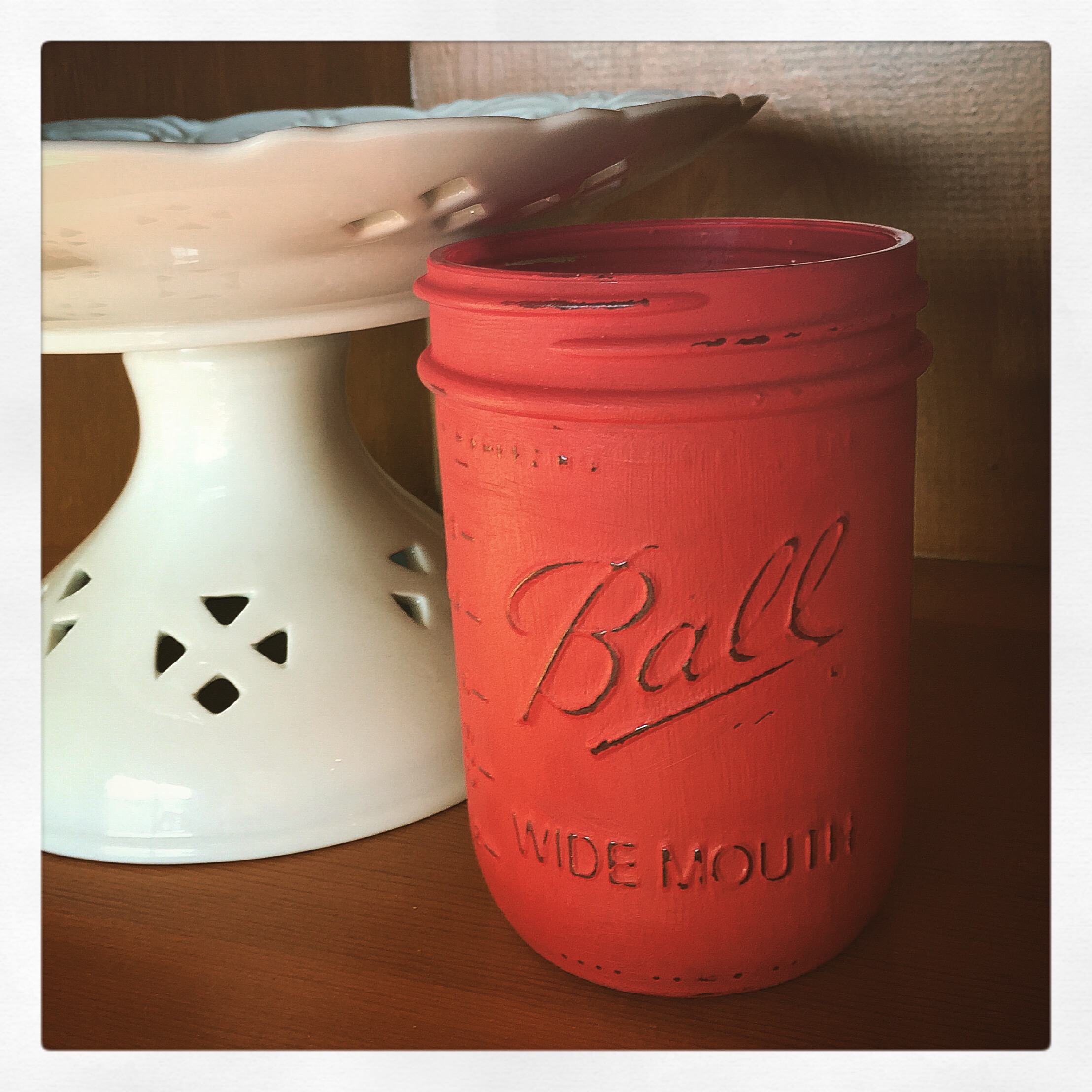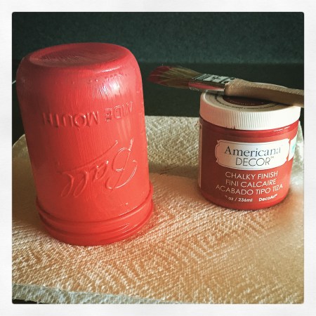 I’ve seen these painted distressed mason jars everywhere and decided it was finally time to try my hand at painting them. Since Valentine’s Day is just around the corner, I chose this beautiful red paint – added bonus, I use red in my everyday decor so I can use this pretty jar all year!