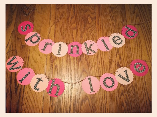 A few months ago, some friends were hosting a shower to welcome a sweet baby girl to the world. They asked me if I could make a banner to decorate the table using the phrase “sprinkled with love” and sent me pictures for inspiration…this is what I came up with.