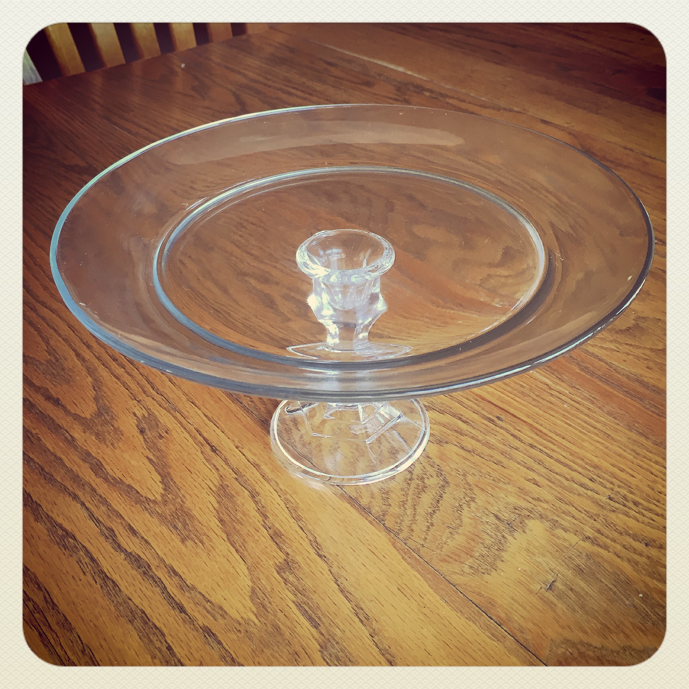 Once you’ve chosen your plates, all you need are glass candlesticks and E6000 adhesive. Make sure to get the clear adhesive – it also comes in white and black so check the package! I picked mine up at Hobby Lobby (using my coupon, of course!).