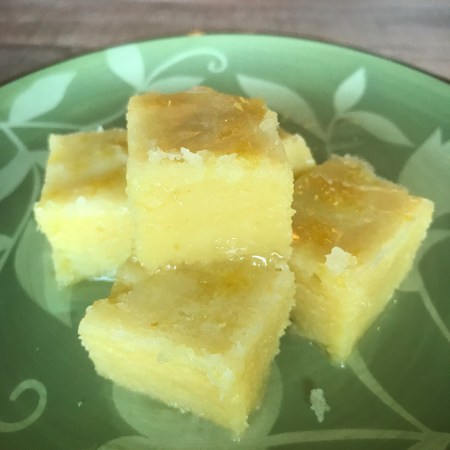 They have a more dense texture than lemon bars – sort of like a lemon brownie. And the glaze on top adds even more lemony goodness! 🍋