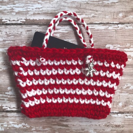 This is the cutest little shopping bag!! The pattern, which you can find here at Little Monkey Crochet, is actually a mini beach bag. I started thinking about Christmas (it will be here before we know it 😳) and thought it would be so fun to make it into a shopping bag to hold a gift card or cash.