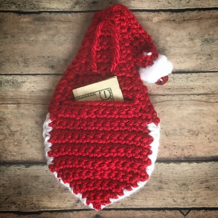 I have been having so much fun crocheting different gift card holders! I’ve made this cute Mini Shopping Bag and these Candy Cane Bags so far. And now I’ve made this adorable Santa that can also double as an ornament for your tree!