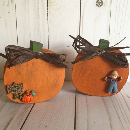 I have a super easy project to share with you today. I found these cute chunky pumpkins in the craft aisle at Target. I loved that the were so thick – they are 1-inch wide and measure about 3-1/2 by 3-1/2 inches.