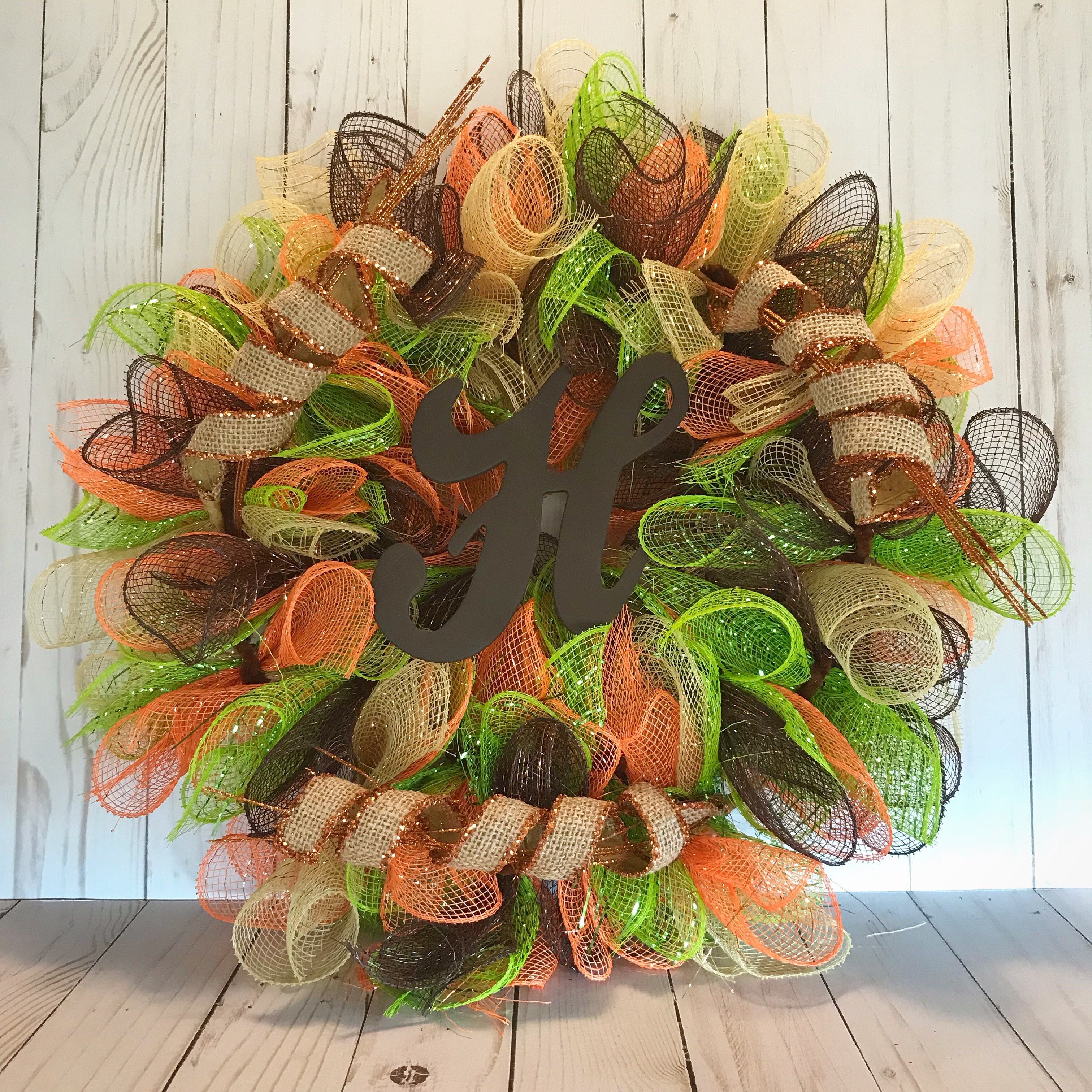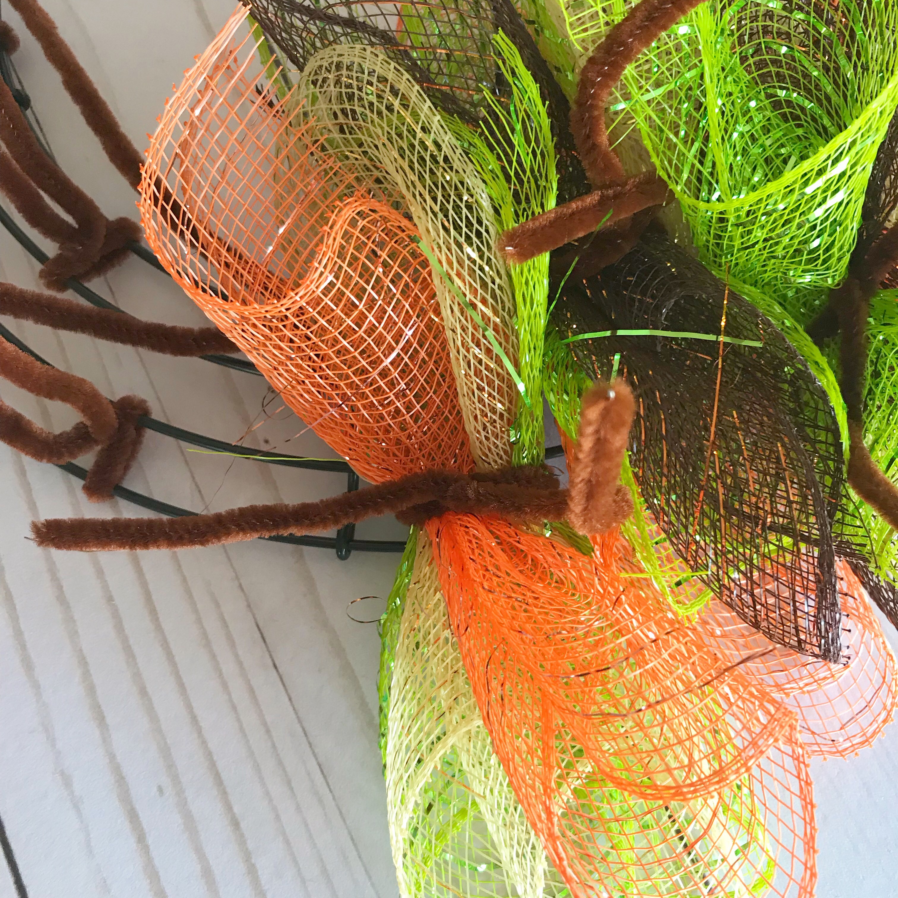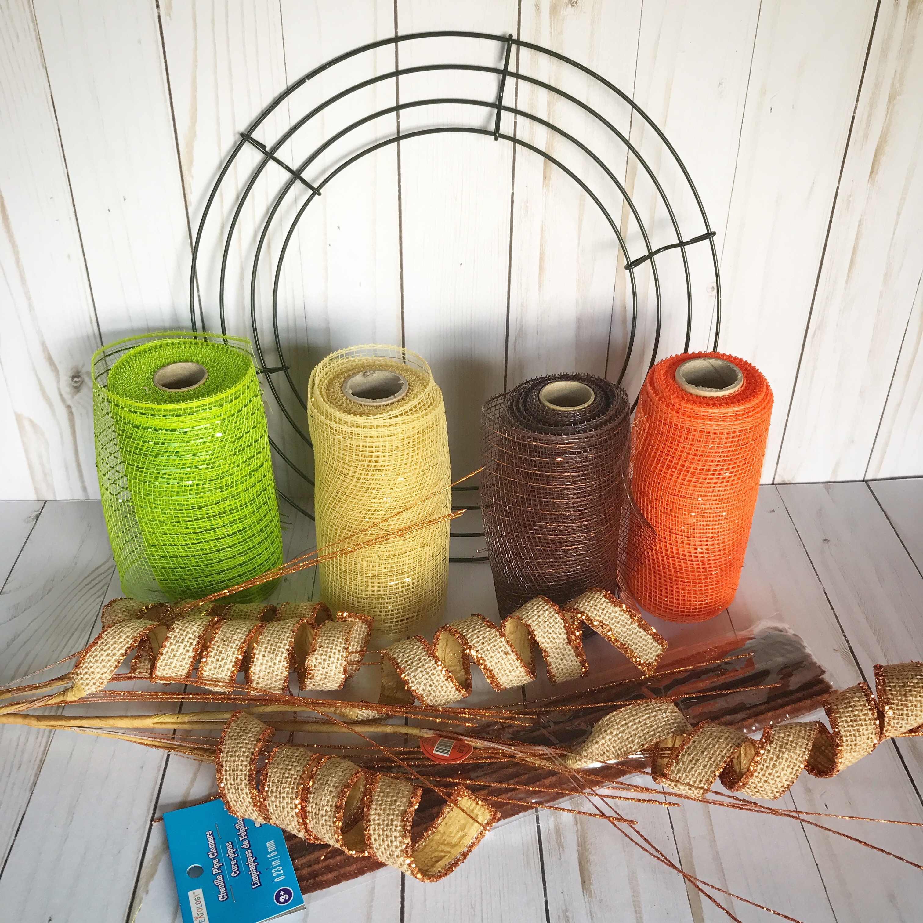 - 5.5-inch wide deco mesh in your choice of colors (I chose lime green, orange, gold, and brown)