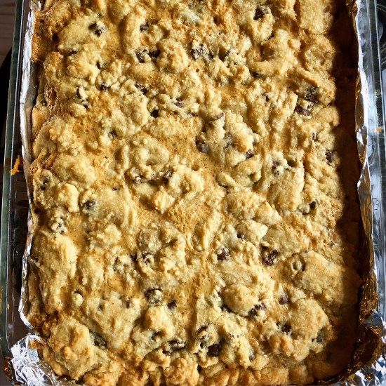 Is there anything in that name that doesn’t sound good?!?!? Chocolate Chip Caramel Butter Bars…when I found this recipe on Pinterest I knew I would have to try it! The recipe is here at Crazy for Crust. These bars are amazing and so simple to make!