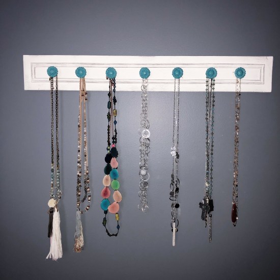 I have several long necklaces that always seem to get tangled together in my drawer. And I can never find the one I want without looking through all of them! I have been looking for just the right DIY piece to transform into an organizer to hang on my wall.