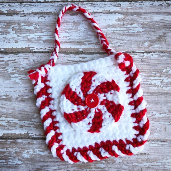 This cute little Christmas Candy Treat Bag works up really quickly and is so fun to make. You can find the free pattern here at Blackstone Designs. The only thing I did differently from the pattern was to sew the candy piece to the bag with a button.