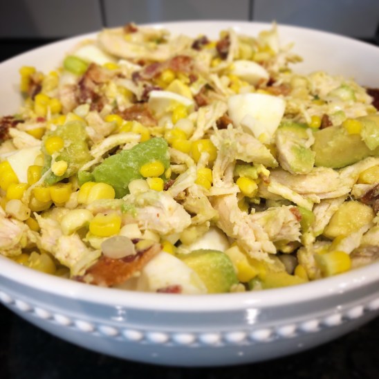 It has bacon (how can you go wrong?!?), sweet corn, and of course chicken and avocado! You can find the full recipe here.