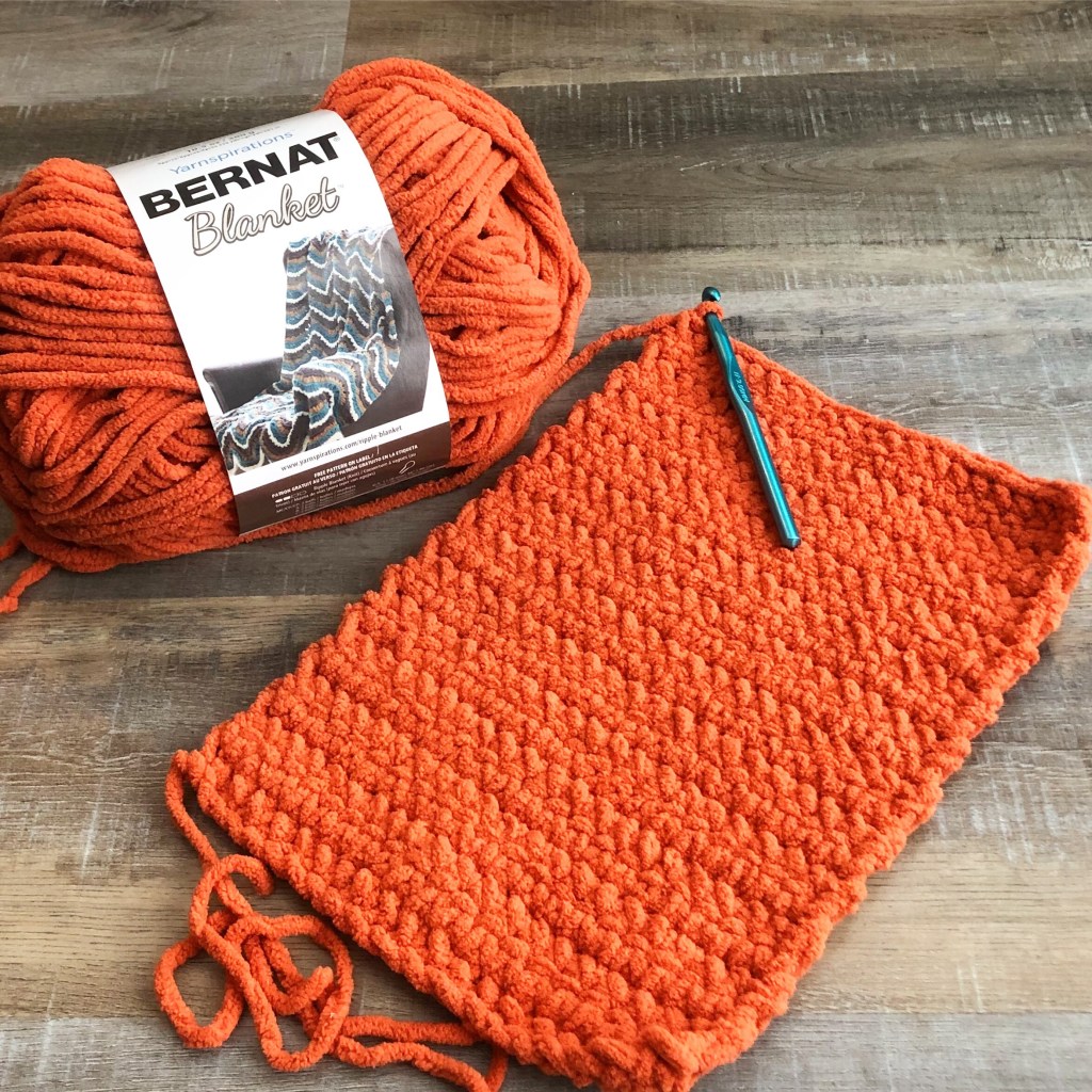 Bernat Blanket Yarn (I used Pumpkin Spice and Vintage White)