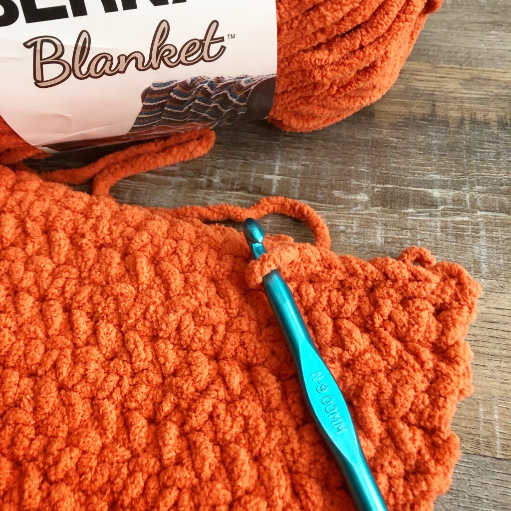 When I think of Fall, I think of pumpkins! I was playing with Bernat Blanket yarn and came up with this simple single crochet pattern for these Chunky Crocheted Pumpkins. They work up super quickly because of the weight of this super bulky yarn and an N/9mm hook.