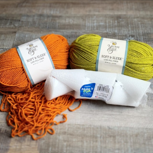 My styrofoam cones measured 1.8 x 2.7 inches. If you want to make larger carrots, there are several sizes of styrofoam cones to choose from. If you decide to make them larger, you may want to consider getting thicker yarn – otherwise you’ll be wrapping forever! 🙂