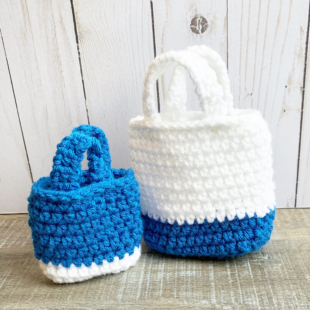 I think you could also use a chunkier yarn with a larger hook to make these cute gift bags – of course that would make the finished size larger than the measurements in the pattern. Color combos are limited only by your imagination! 🙂
