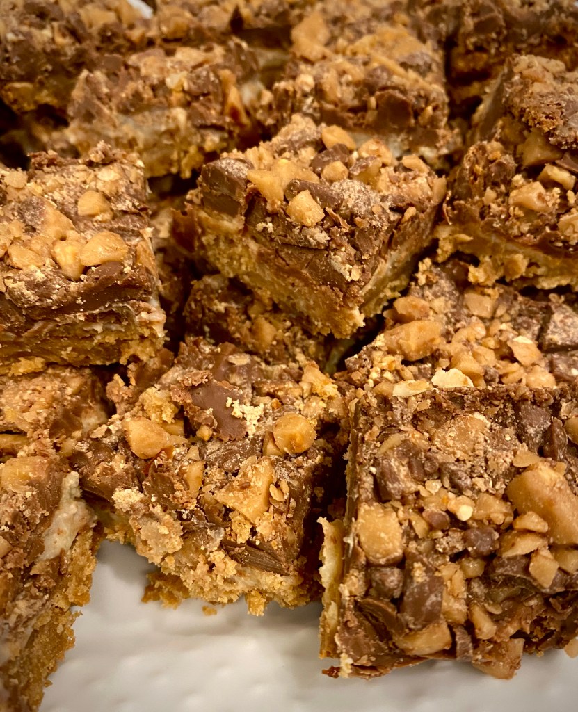 I found the recipe for Toffee Chocolate Bars here. I used butter instead of margarine because that’s what I had on hand. I should have sprayed my pan with non-stick spray before pressing the crust in the pan – just a tip. 🙂 But the bars were quite tasty! (Oh, and I also used a 14 ounce can of sweetened condensed milk because I couldn’t find a 10 ounce can.)
