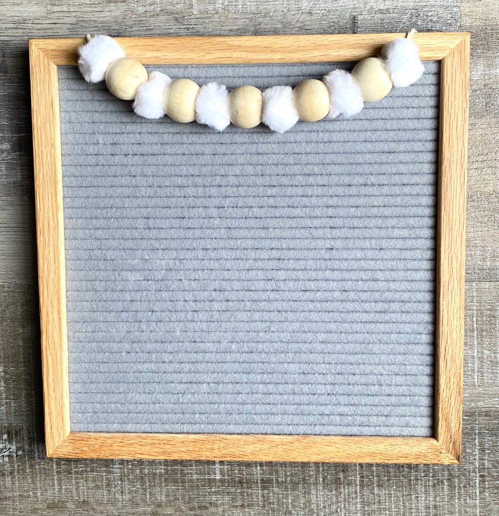 I thought it might be fun to add a little something to the board, but I didn’t want it to be permanent. This garland is a fun, easy way to “dress up” my board when the mood strikes me 🙂