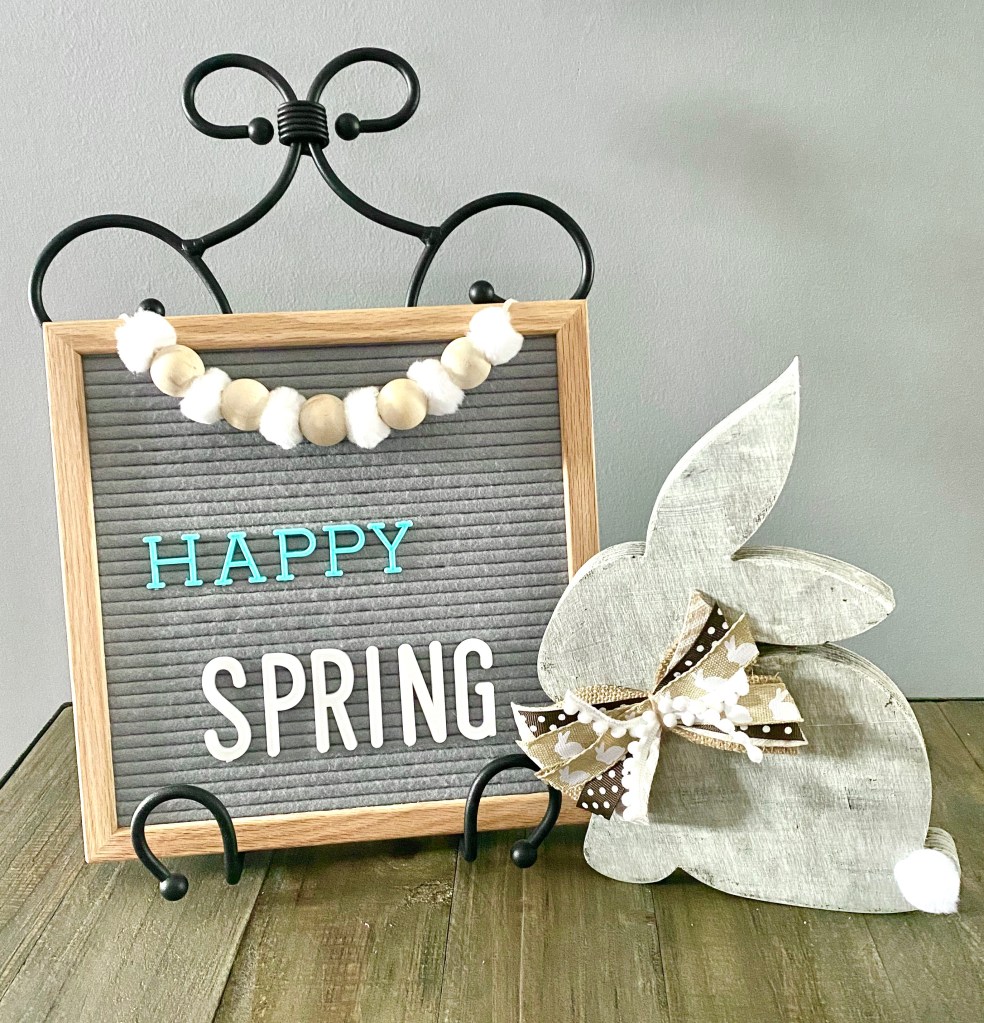 And here’s my board all dressed up for Spring! You can find all the info about my cute Rustic Farmhouse Easter Bunny in this post.