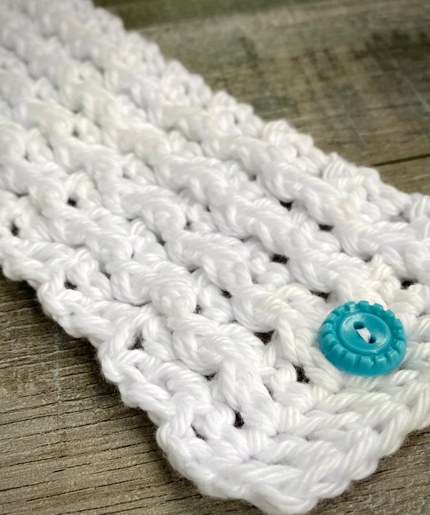 It’s a super easy pattern that you can make in less than 15 minutes using cotton yarn. It’s great for using up left over yarn from other projects and can be made in your choice of colors. You’ll find the pattern below along with a link to a free PDF if you’d like to easily print it.