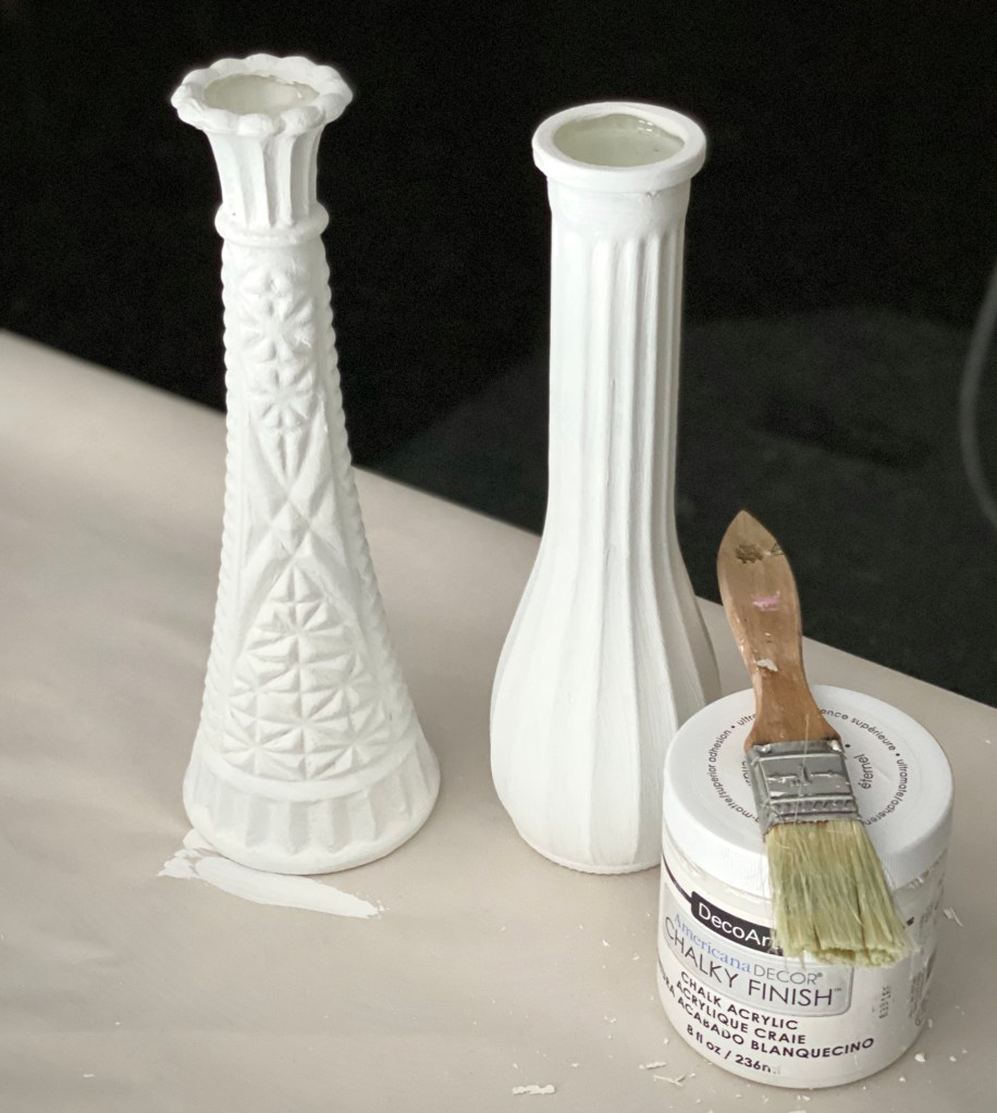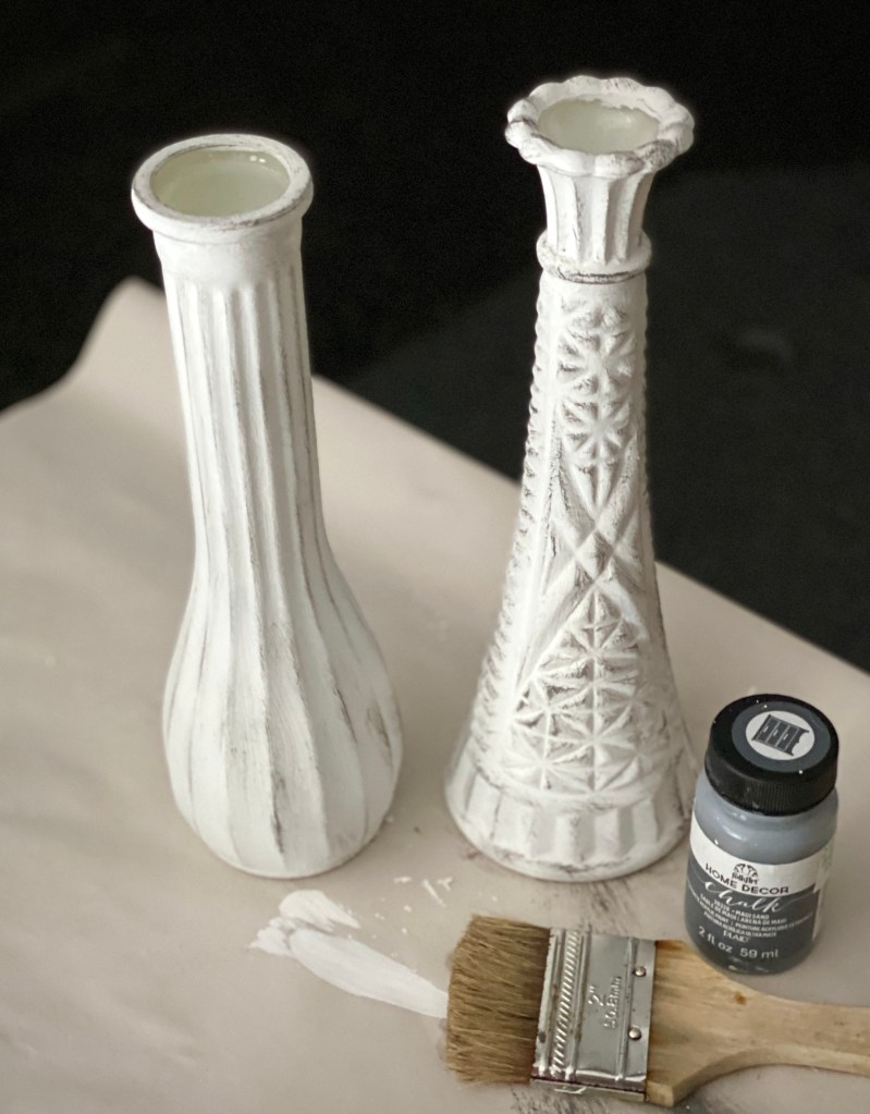 I really like the way they turned out! I was thinking that if I didn’t dry brush the gray on the vase and used glossy sealer spray instead of matte, they really would like like milk glass! I may have to get some more vases and try that…