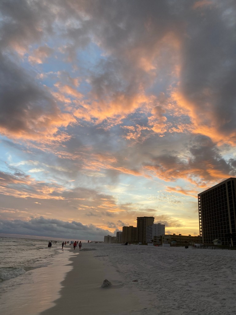We like to stay in Destin, Fl in the Florida panhandle. There are beautiful white sand beaches and the water colors range from a beautiful blue to a gorgeous emerald green. They call it the Emerald Coast and it certainly lives up to its name – even when storms are rolling in!