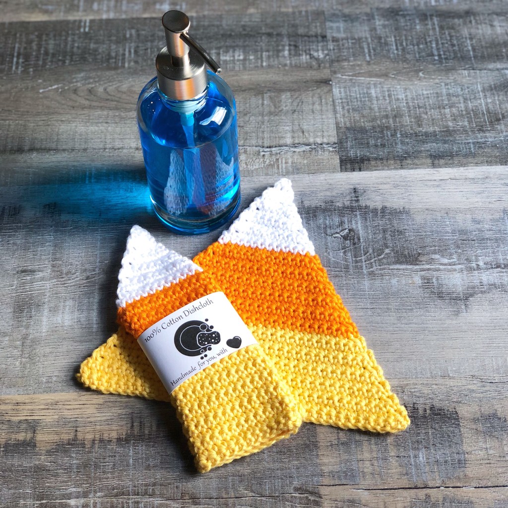 This is a fun Candy Corn Dishcloth. The pattern is here.