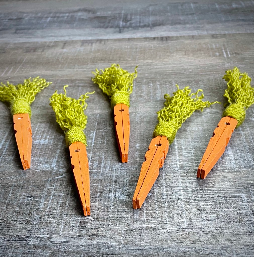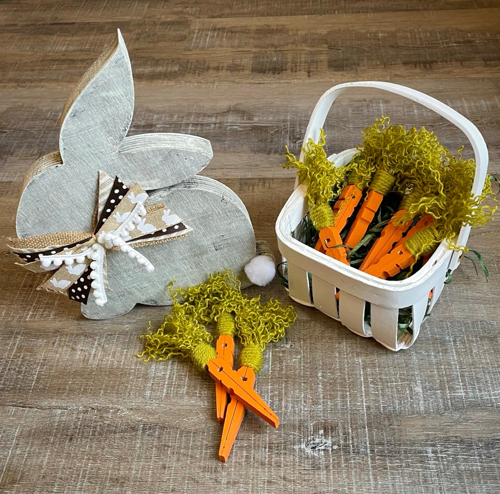 So adorable! They are so cute with my Rustic Farmhouse Easter Bunny. I found the sweet little basket in the Easter section at Hobby Lobby. It’s a cute way to display a basketful of these fun carrots.