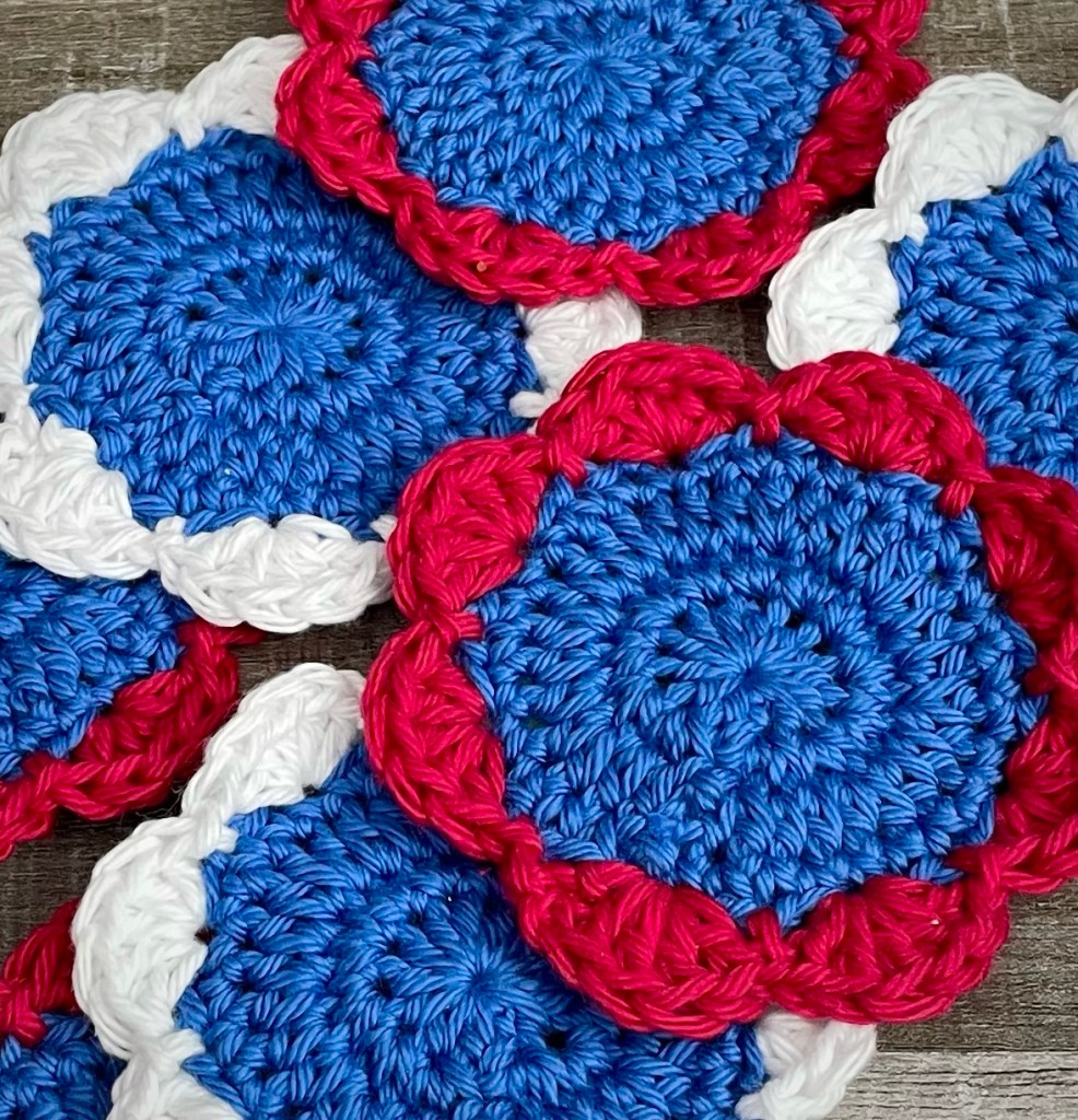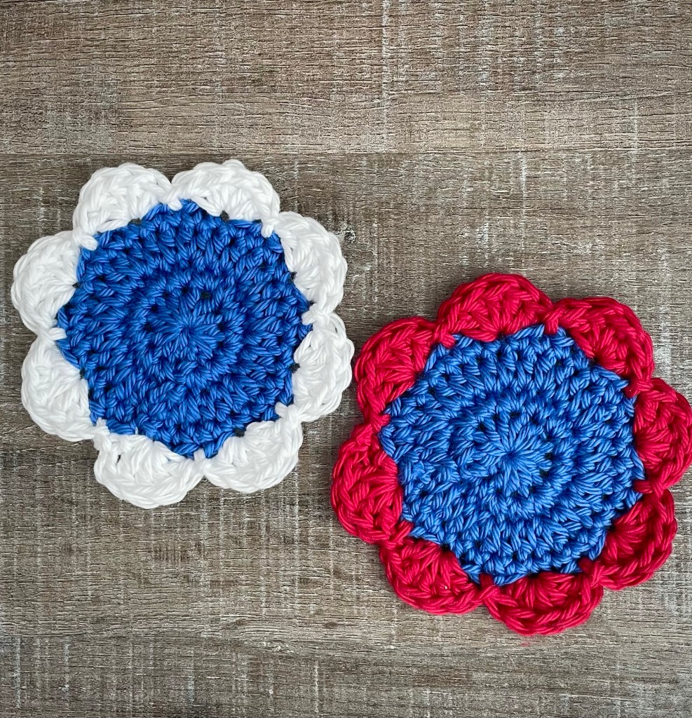 I have a quick and easy Crochet Patriotic Flower Coaster pattern for you today. They will look so cute on your patio table for all of your gatherings this Summer!