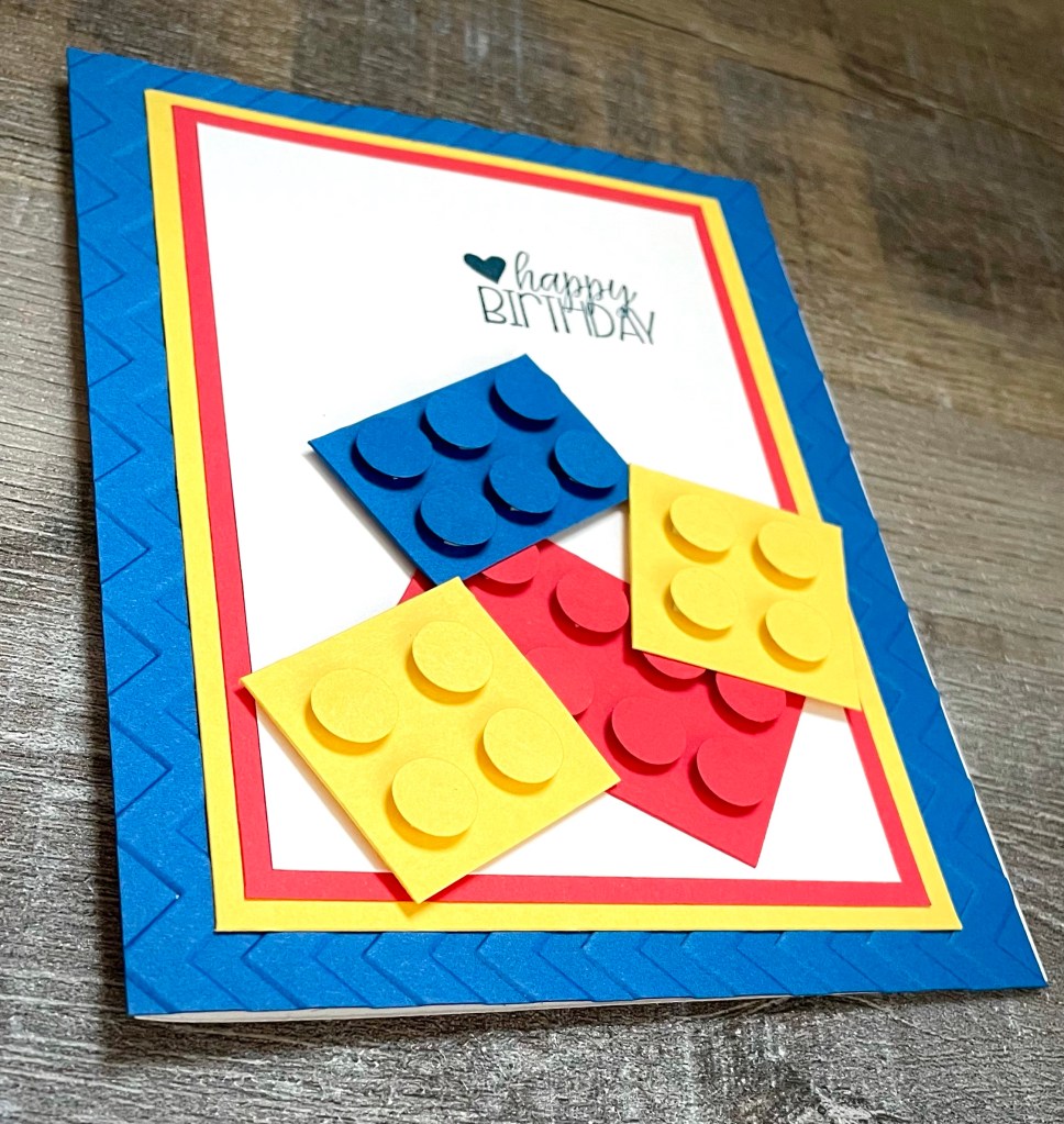 This first card is perfect for all those building block lovers whether they are young or a little older. 😉 I know I’ve seen cards like this before, so if you’ve made one like it please know that I’m not trying to claim the idea as my own – I just can’t remember where I’ve seen it! This is my take on your great idea. 😊
