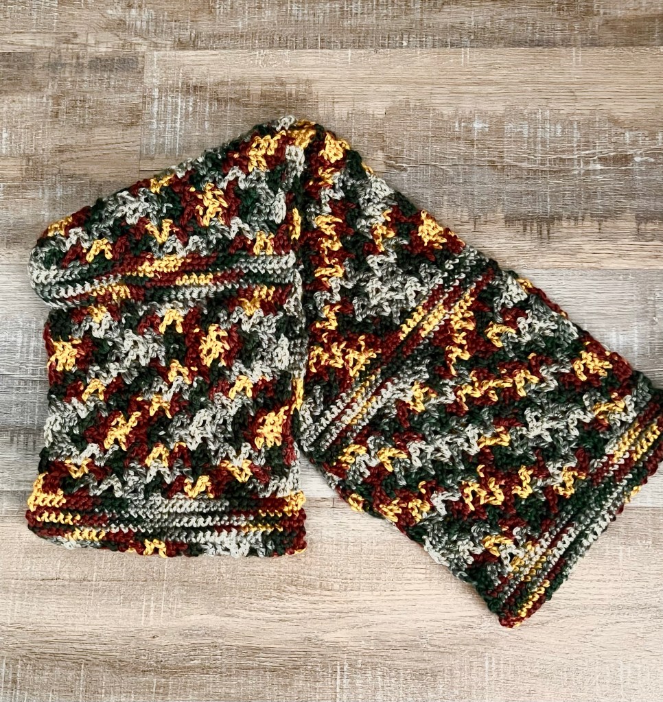 I stitched 8 sections of single crochet and 8 sections of v-stitch on my scarf.