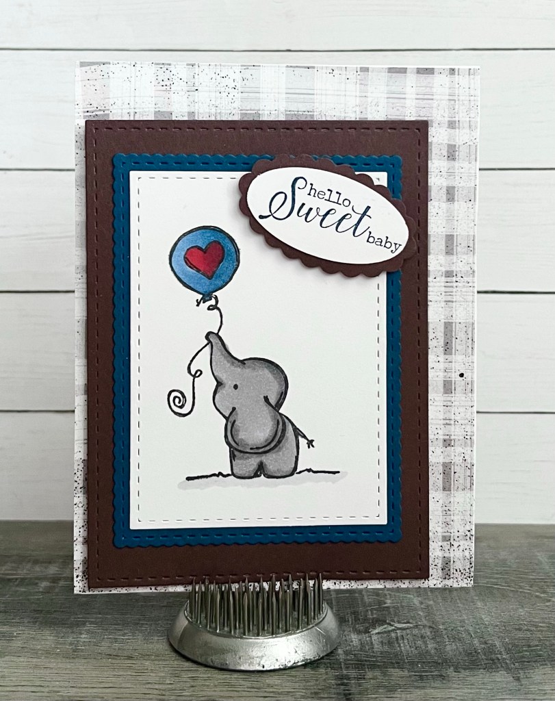 Sweet Elle from Unity Stamp Company is one of my favorite stamps to use for making baby cards. I love the way this card turned out and even though her name is Elle, she made a fantastic baby boy card. 💙 This card was for my godson and his beautiful wife for their first baby – he was born on February 14th and I can’t wait to meet him!!