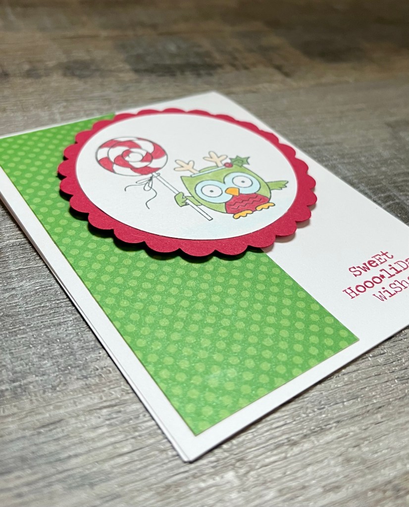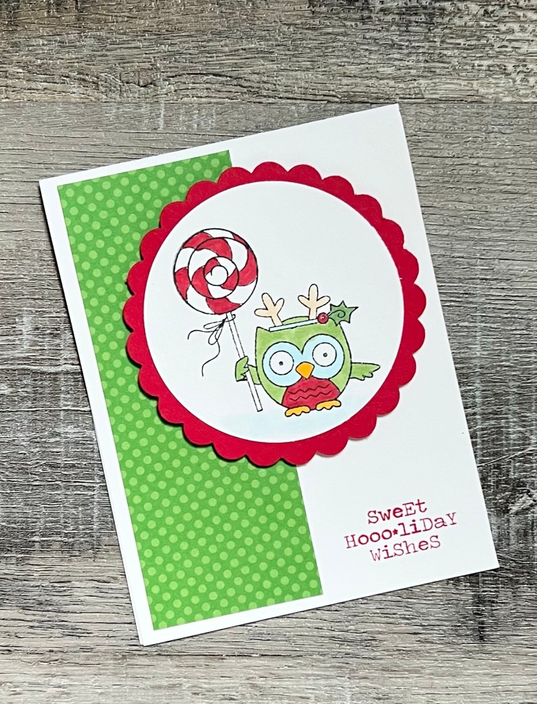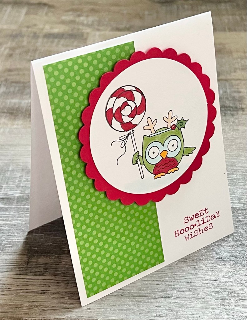 This month I decided to pull out one of my older Christmas stamps because it’s still just so cute! This sweet owl is from the Ho Ho Hoot set by Darcie’s. Sadly, this set is no longer available but you can find some other adorable Darcie’s Christmas stamps here.