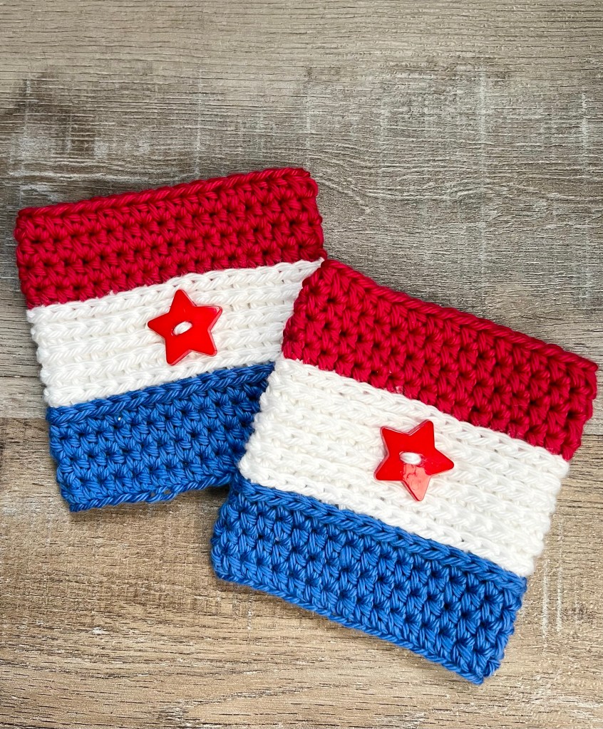 Are you having a BBQ or picnic for the 4th of July? Or maybe you just want a new cup cozy for Summer? This easy Crochet Patriotic Cup Cozy works up so quickly that you can make one for all of your guests to take home with them after the party. 🙂