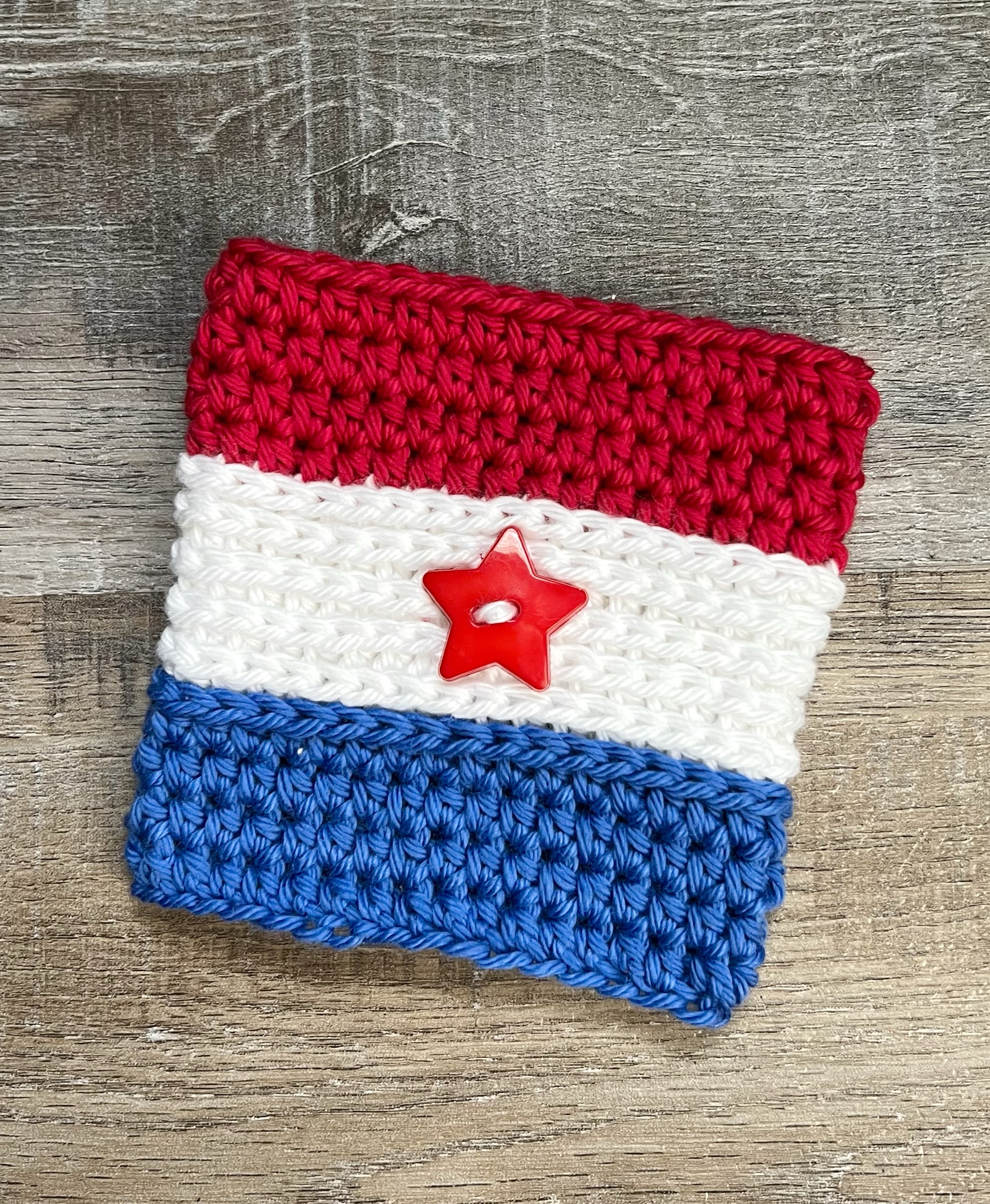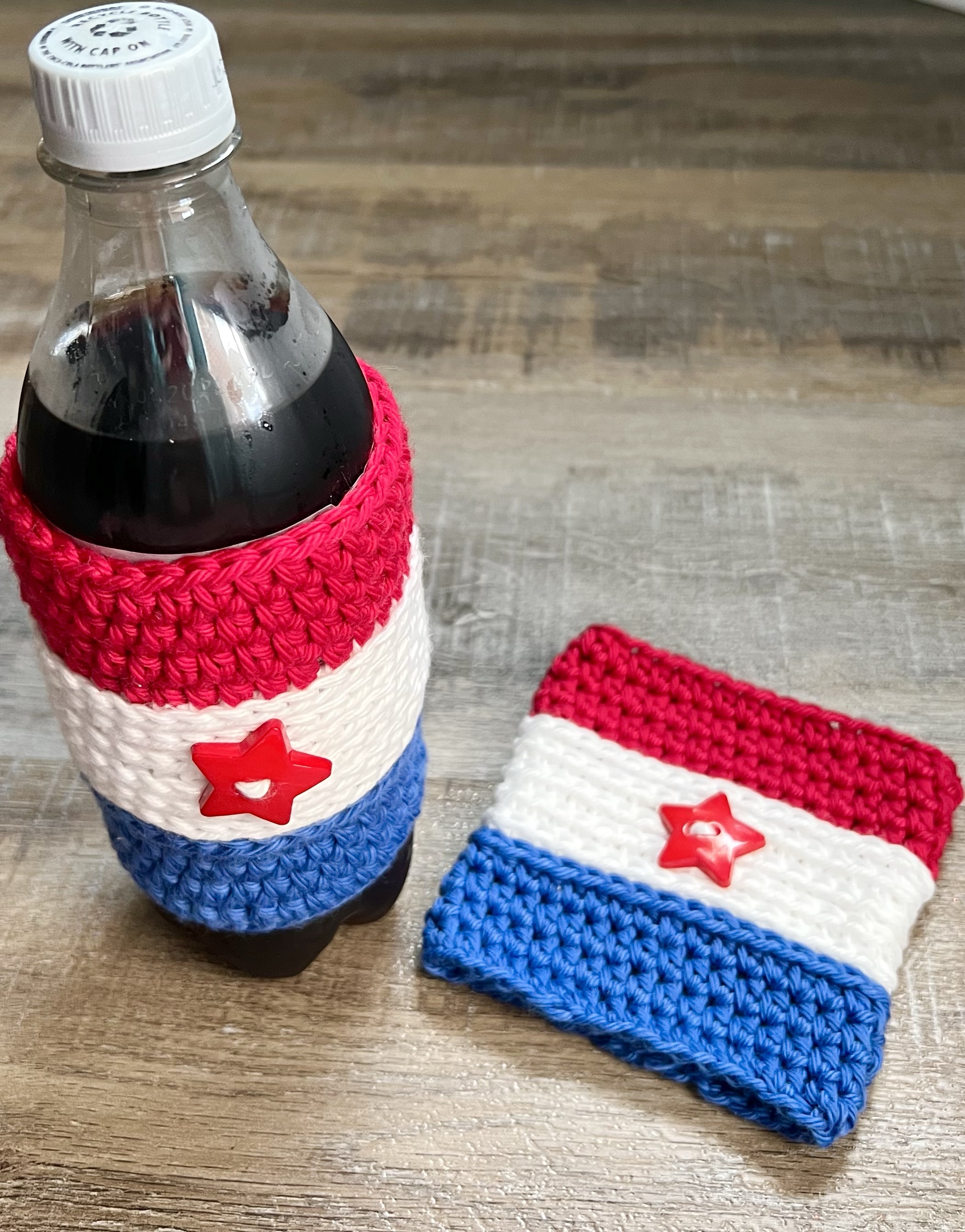 Are you having a BBQ or picnic for the 4th of July? Or maybe you just want a new cup cozy for Summer? This easy Crochet Patriotic Cup Cozy works up so quickly that you can make one for all of your guests to take home with them after the party. 🙂