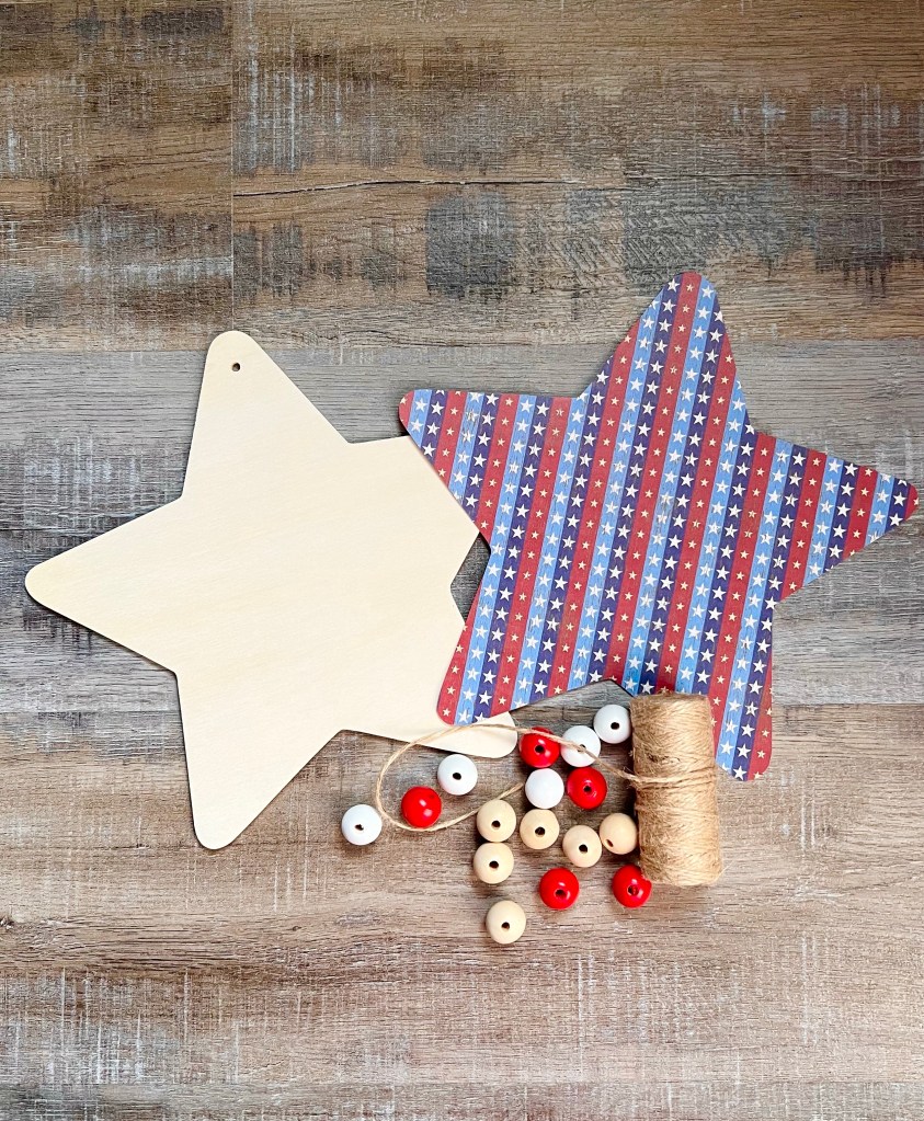 - Unfinished wood star hanger – mine is 10 inches wide and I found it at Dollar Tree
