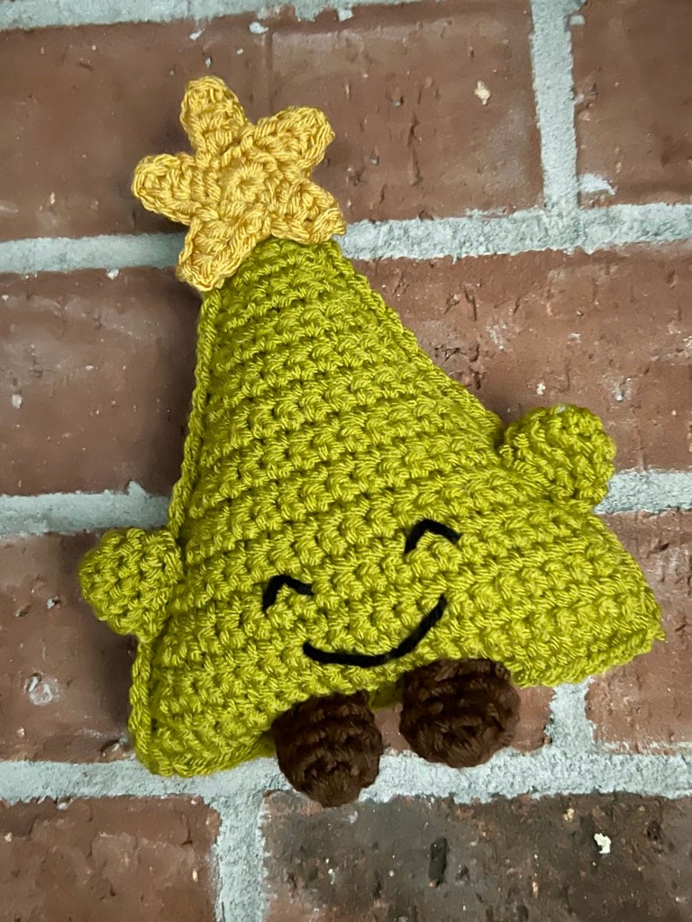 Christmas in July continues with this adorable Crochet Christmas Tree Cuddler. π Just look at that cute face and those sweet little arms waiting for a hug! π€ Itβs the perfect size for little hands – he measures about 7 inches tall and 6 inches wide.