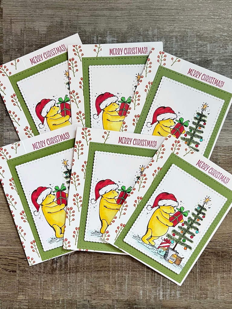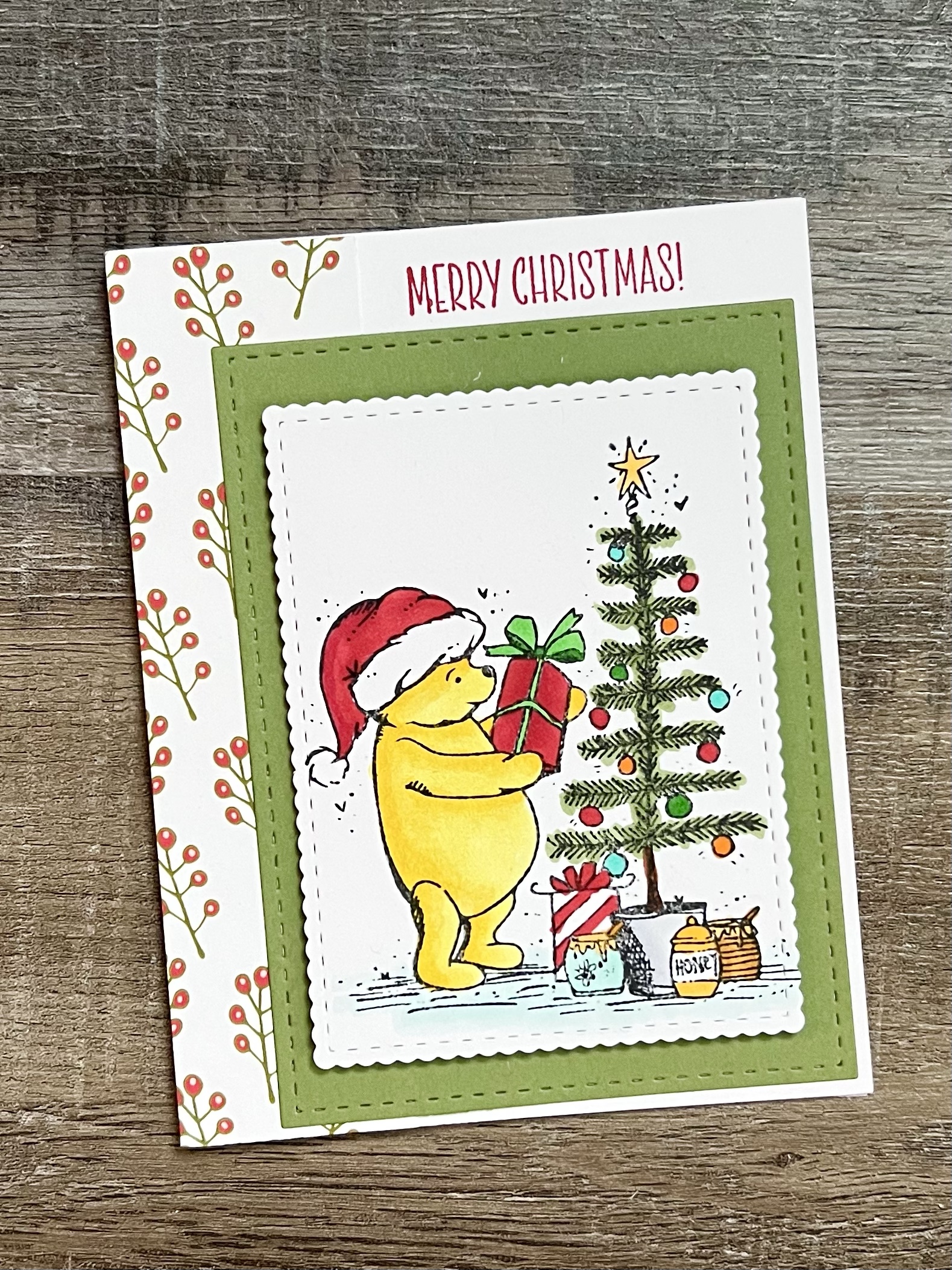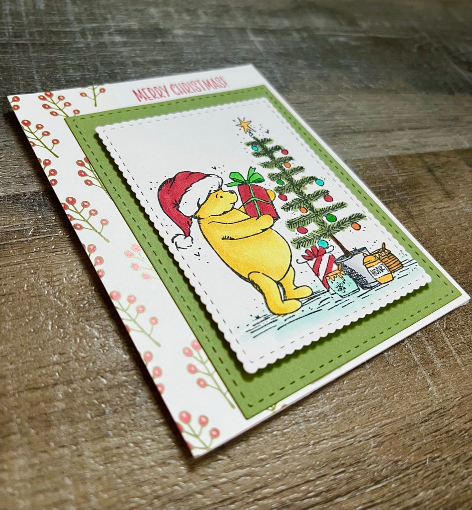 Unity Stamp Company recently released this adorable Winnie the Pooh: Merriest Time stamp set and of course I had to add it to my collection. π It was the perfect stamp to use for my August Christmas card.