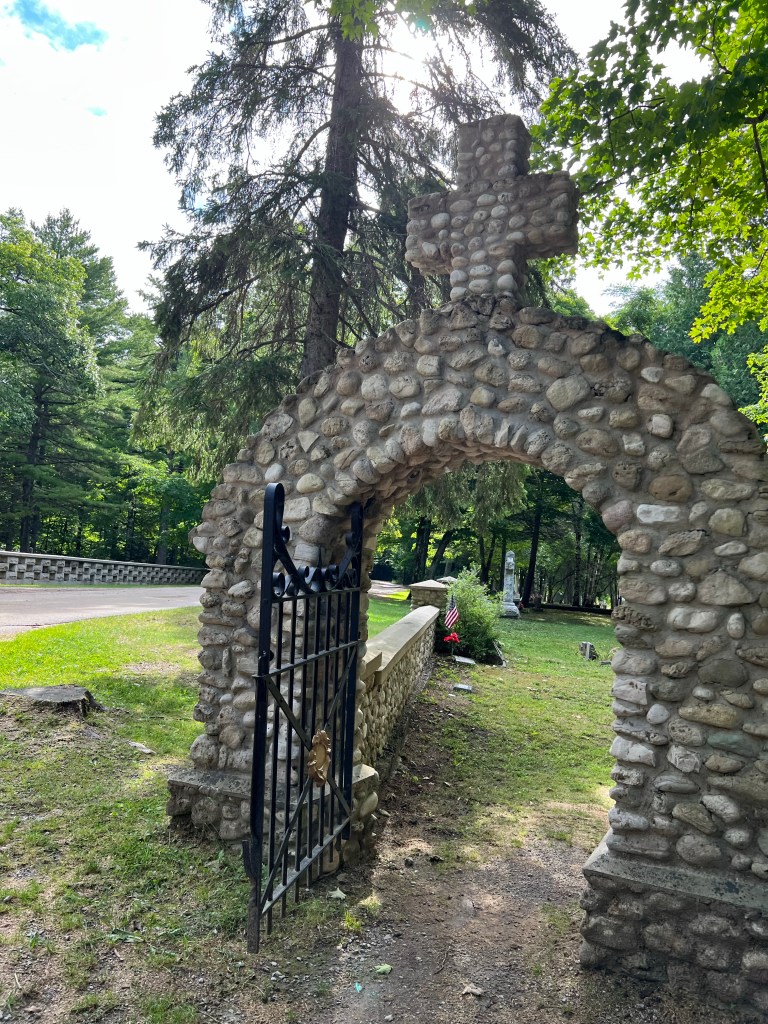 We took a horse drawn carriage tour around the island. We started in the downtown area and rode past some of the beautiful sights on the island. Below is a view of downtown which is filled with shops, restaurants, and fudge shops (I think I saw at least 6!), Little Stone Church, Saint Ann’s Cemetery, Fort Mackinac, and Arch Rock. Most of the island is a Michigan State Park left in its natural state. It was so quiet and peaceful riding in the horse-drawn carriage listening to the clip-clop of the horses with no engine noises.