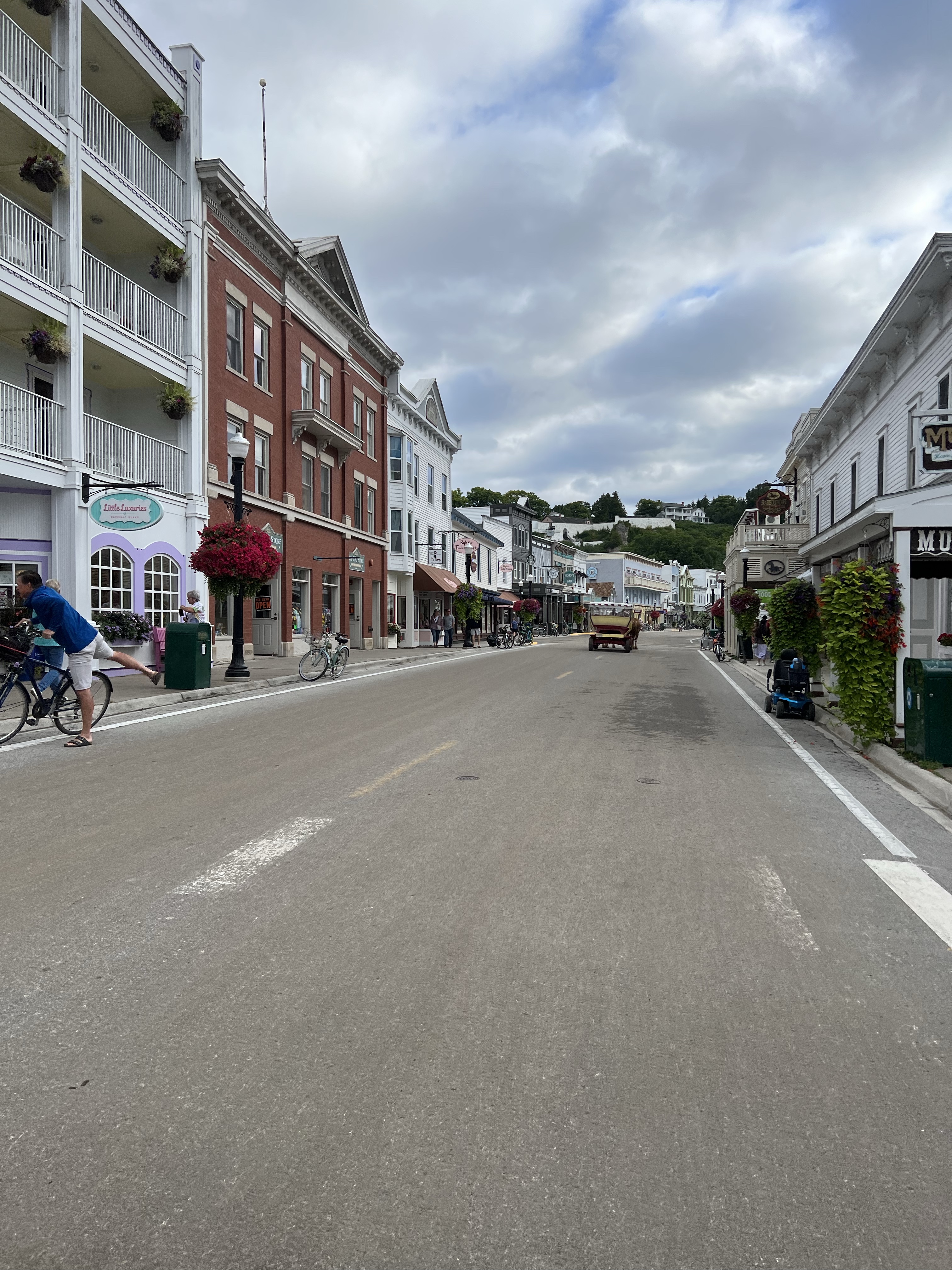 If you’re not familiar with it, Mackinac Island is a small island that sits in Lake Huron off the coasts of the upper and lower peninsulas of Michigan. The island is car-free with lots of horse-drawn carriages, bicycles, and the most amazing fudge!! It’s like taking a step back in time…