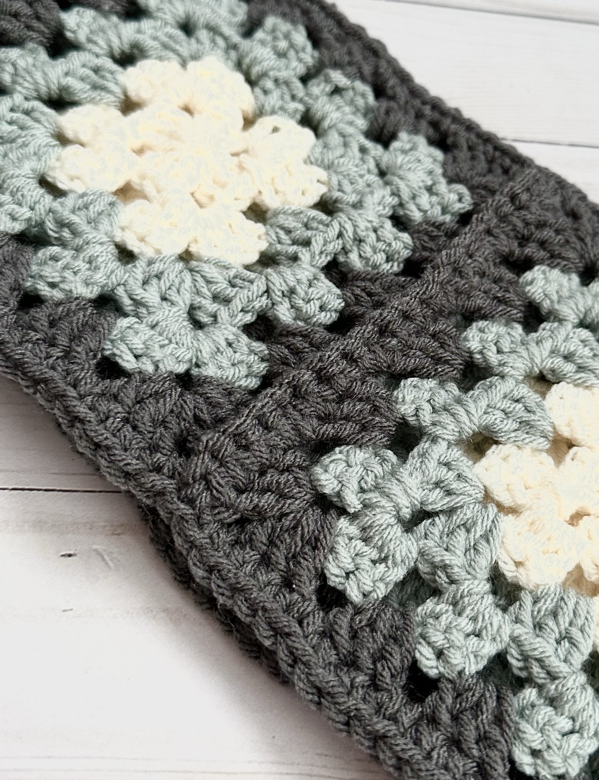 The Crochet Granny Square Cowl is super easy to make and works up quickly! If you want it to be longer, simply add more squares. And your color choices are endless! Crochet cowls make great gifts, too. 😊