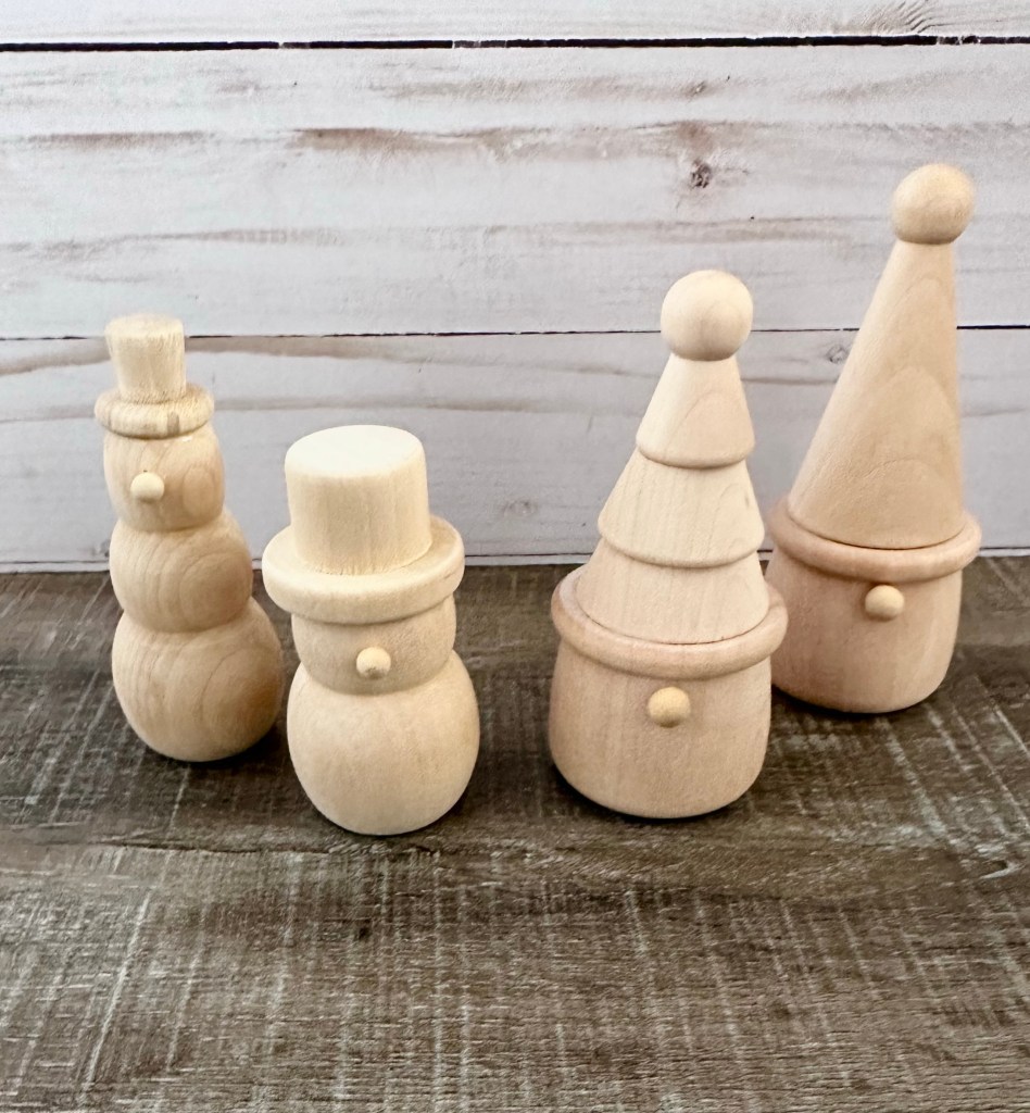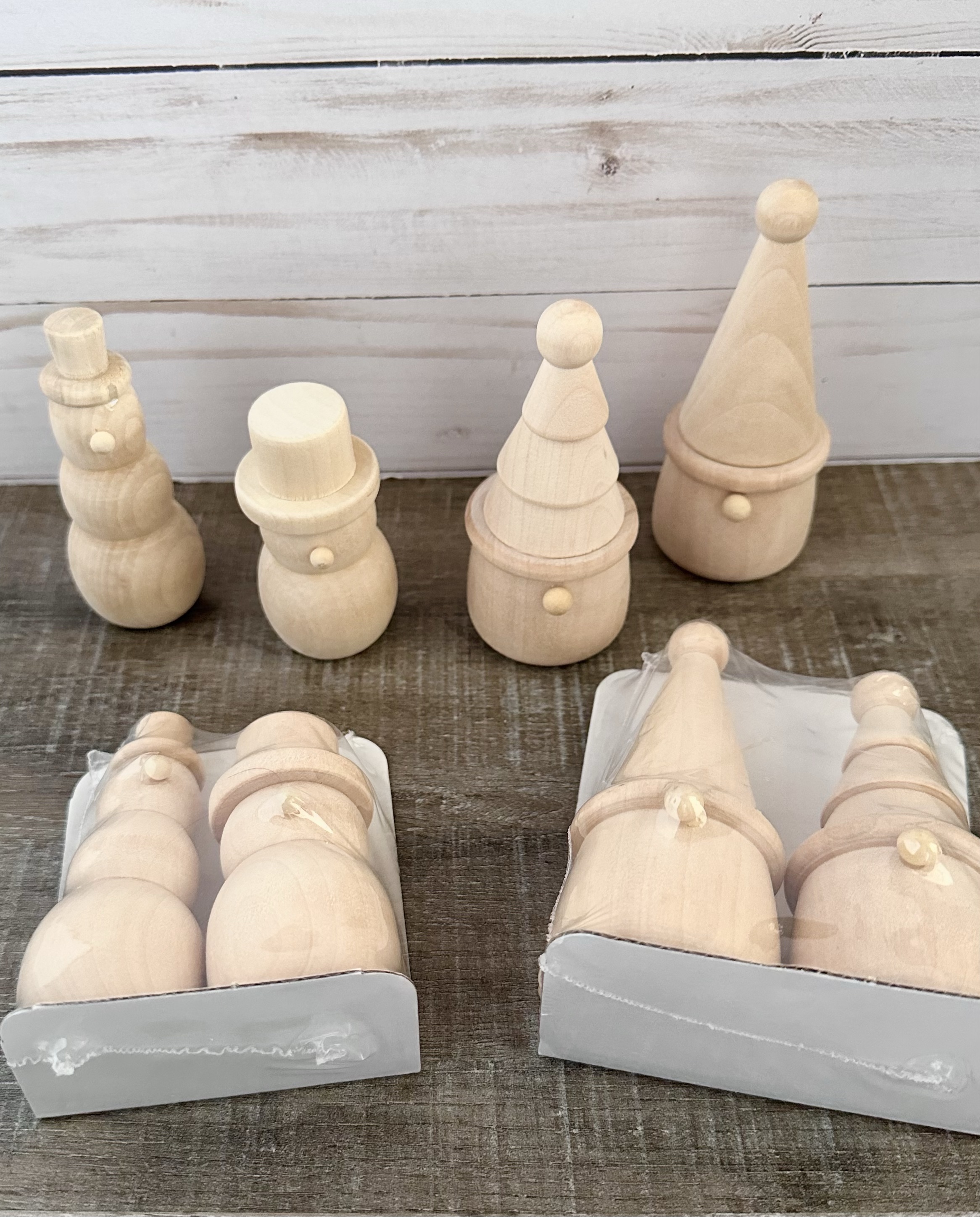 Did you see these cute wood gnomes and snowmen at Target in the Dollar Spot? They came in a package of 2 for just $3.00 and range in size from about 3 inches to 4.25 inches. I couldn’t resist bringing some home with me!