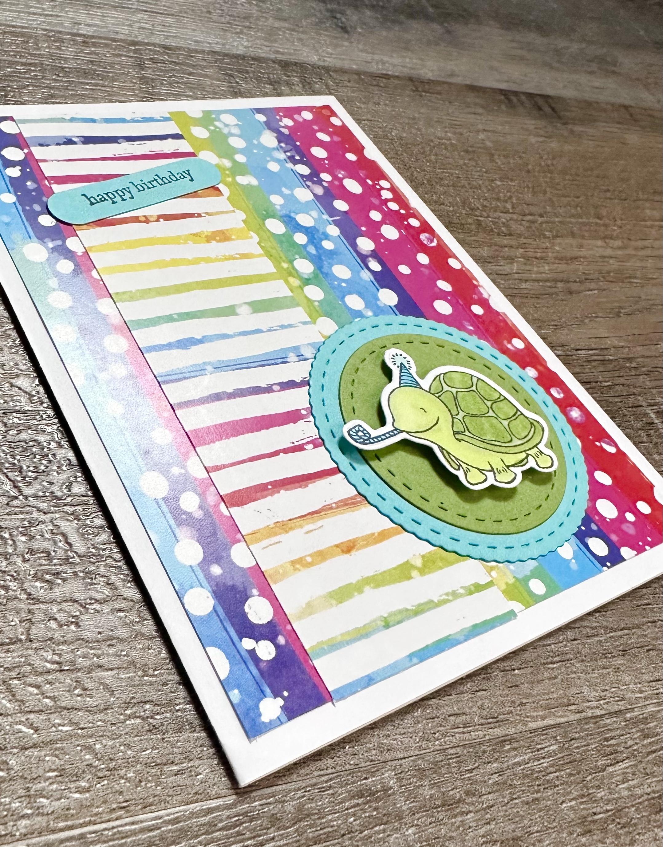 I attached the sentiments and the die cut circles to the cards and then added the animals to the cards with foam tape.