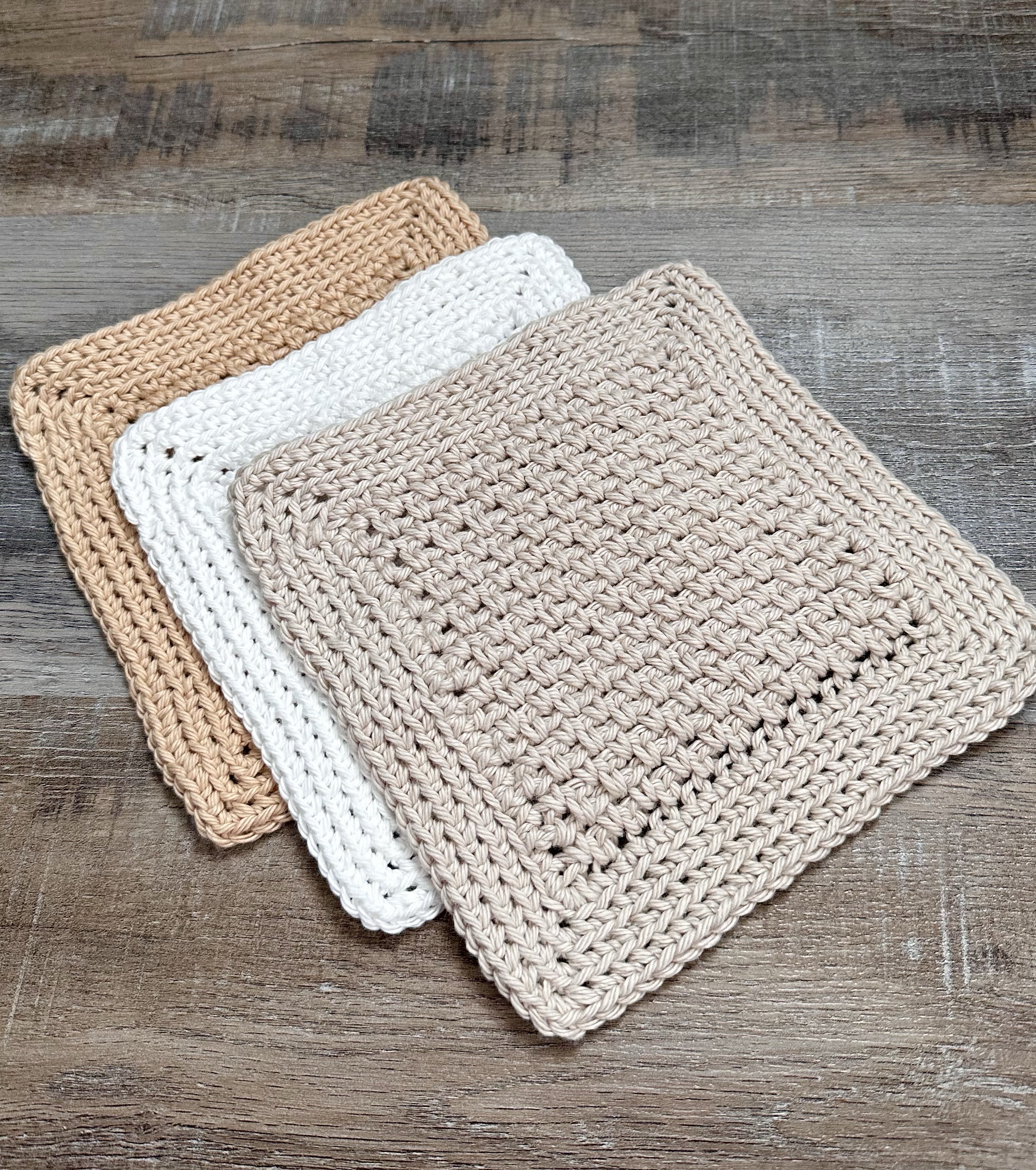 I used I Love This Cotton yarn and an H/5mm crochet hook to stitch up my spa cloths. The colors I used are Taupe, White, and Parchment. Stitch your spa cloths up in your favorite colors – whatever makes you smile. 😊