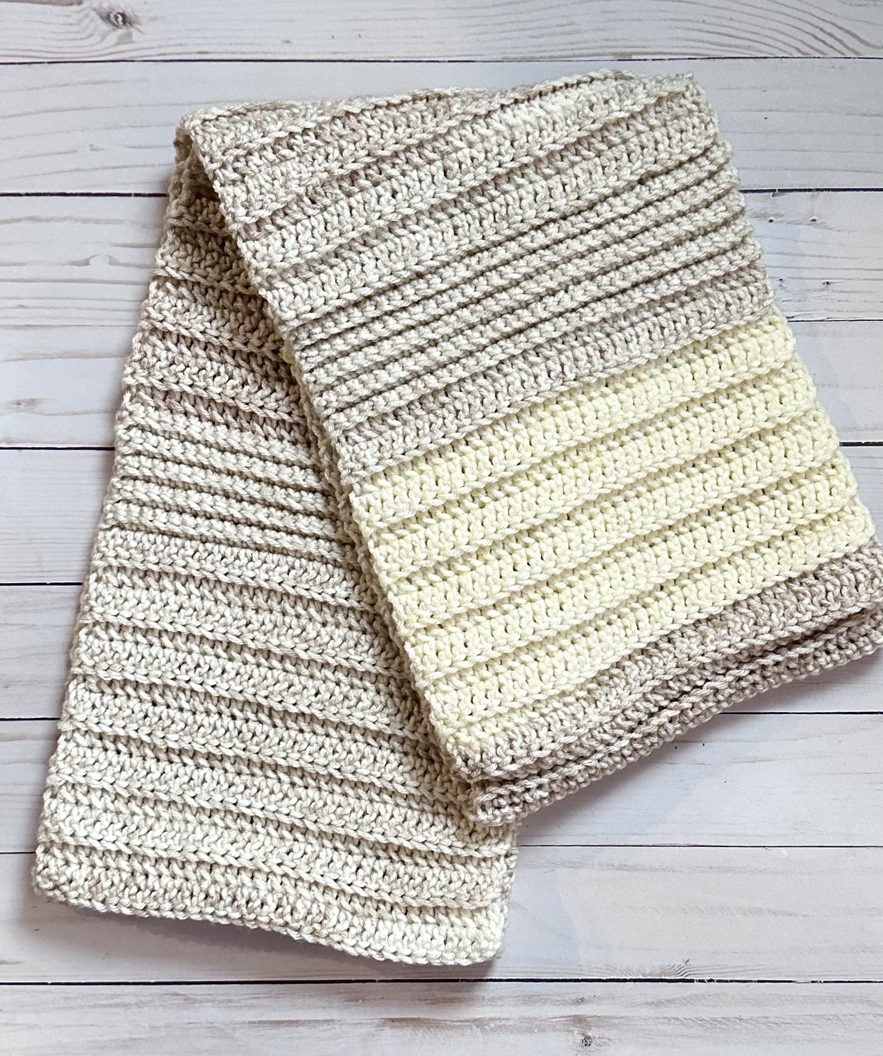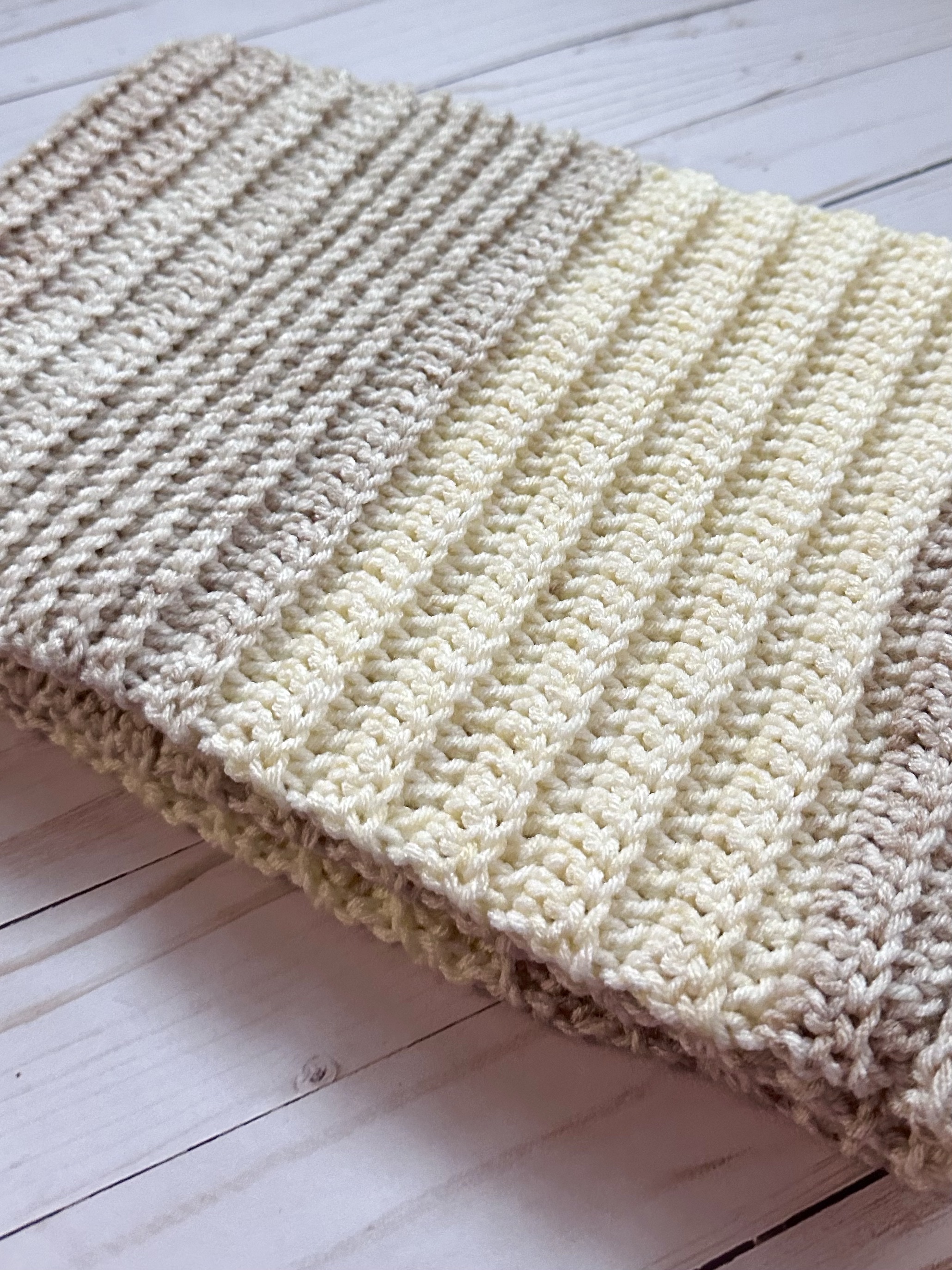 I used Yarn Bee Soft & Sleek in Ivory Stripe with an I/5.5mm crochet hook to stitch up my scarf. You can use any of your favorite worsted weight yarn to make your own beautiful Cozy Crochet Infinity Scarf.