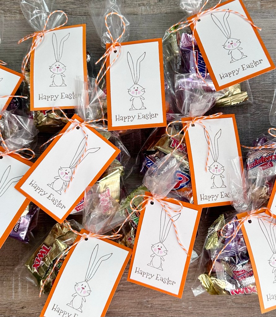 These are such simple little tags, but I think they make giving treats just a bit more fun! Pull out your favorite Easter or Spring stamps and make some cute tags for all your little bunnies. 🐰