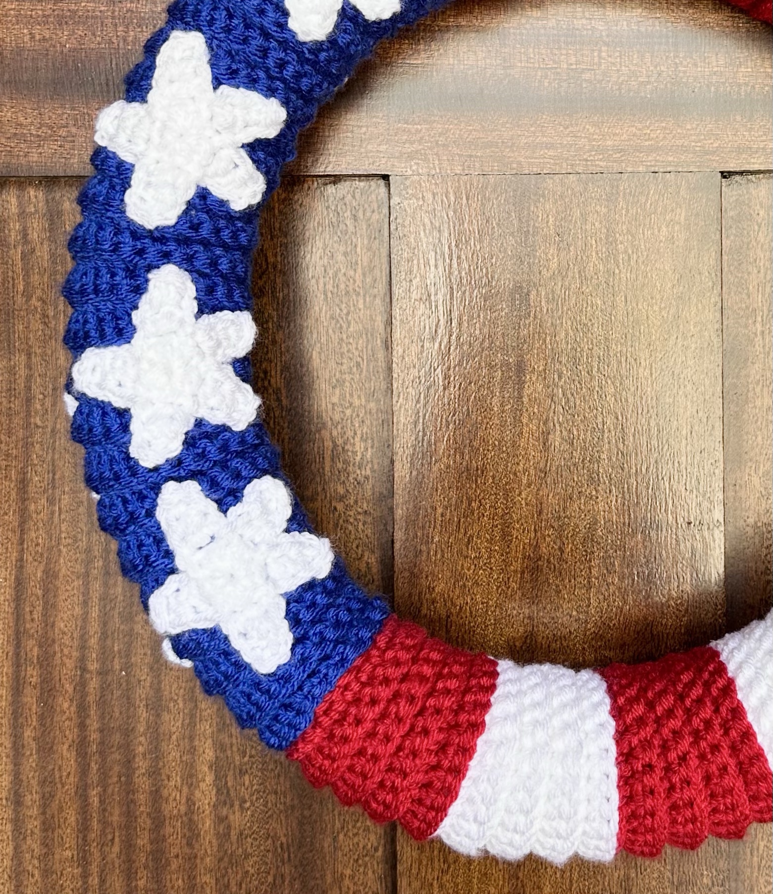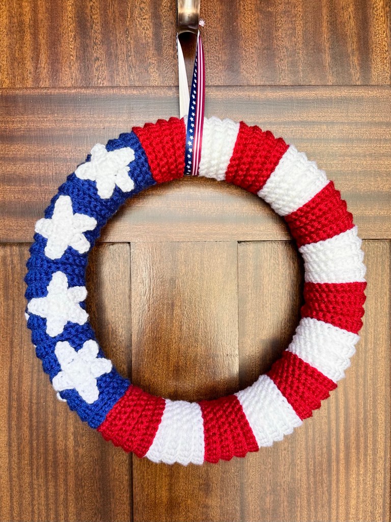 This is a fun pattern to make and a great way to add a little patriotic color to your front door this Summer.