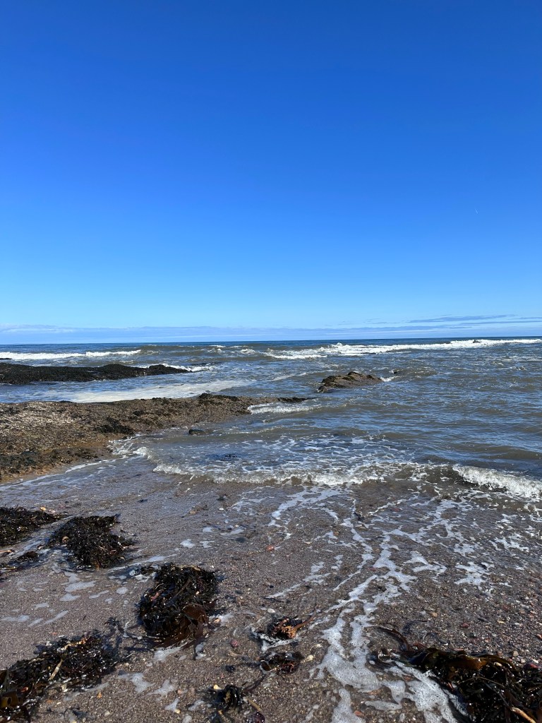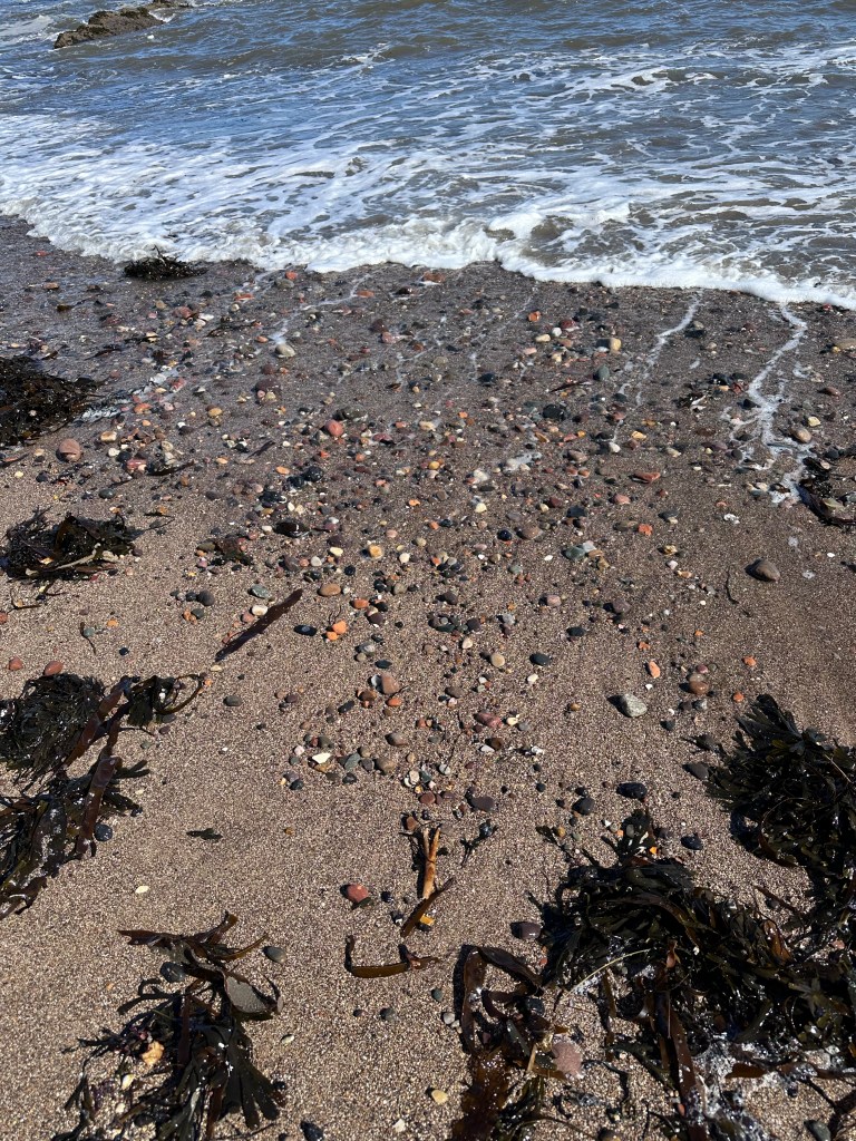 This beach is right next to St. Andrews Castle on the St. Andrews Bay of the North Sea. As you can see, it was a beautiful sunny day when we visited although still a bit chilly for swimming! I did pick up a few seashells from along the water’s edge.