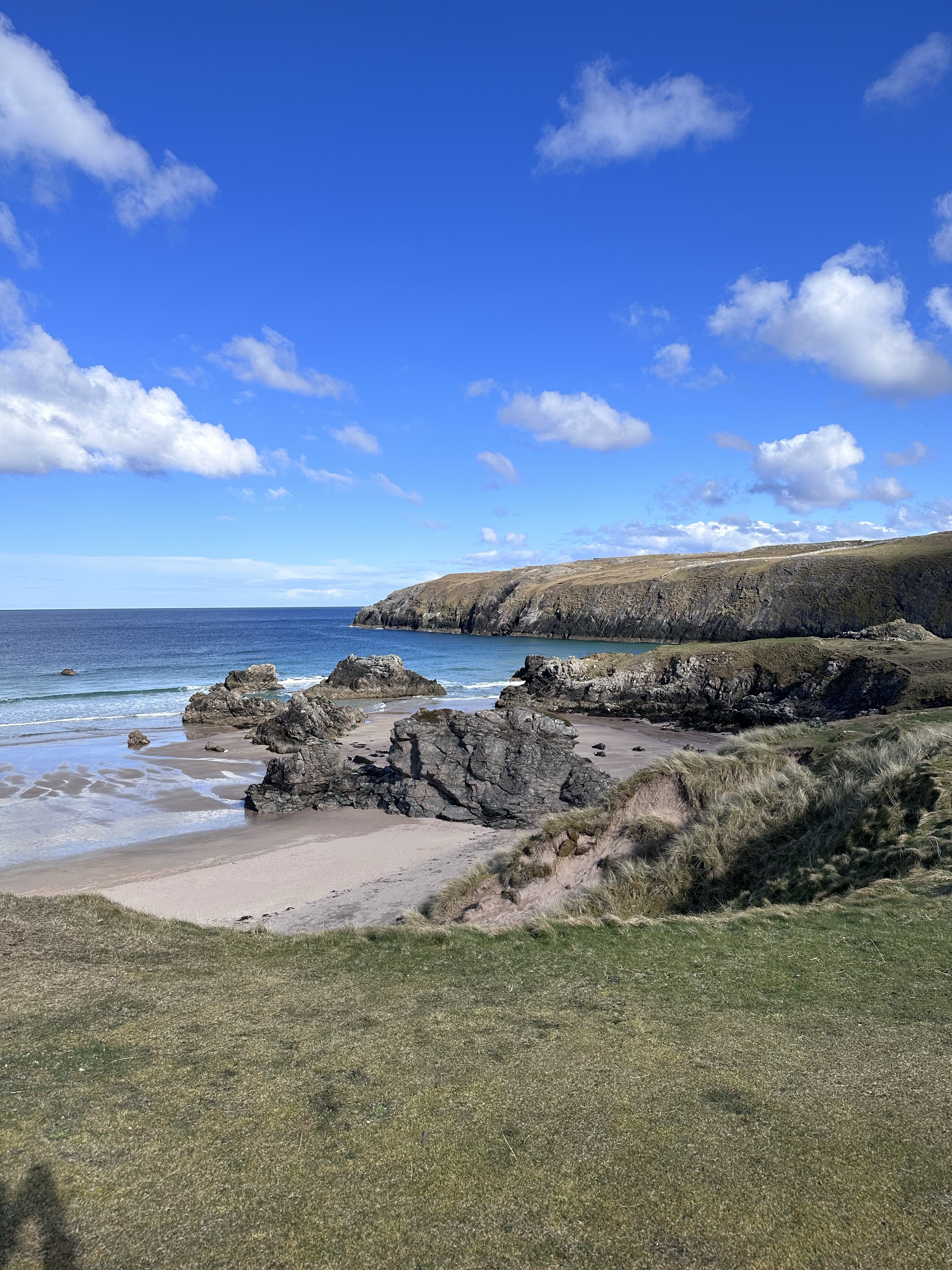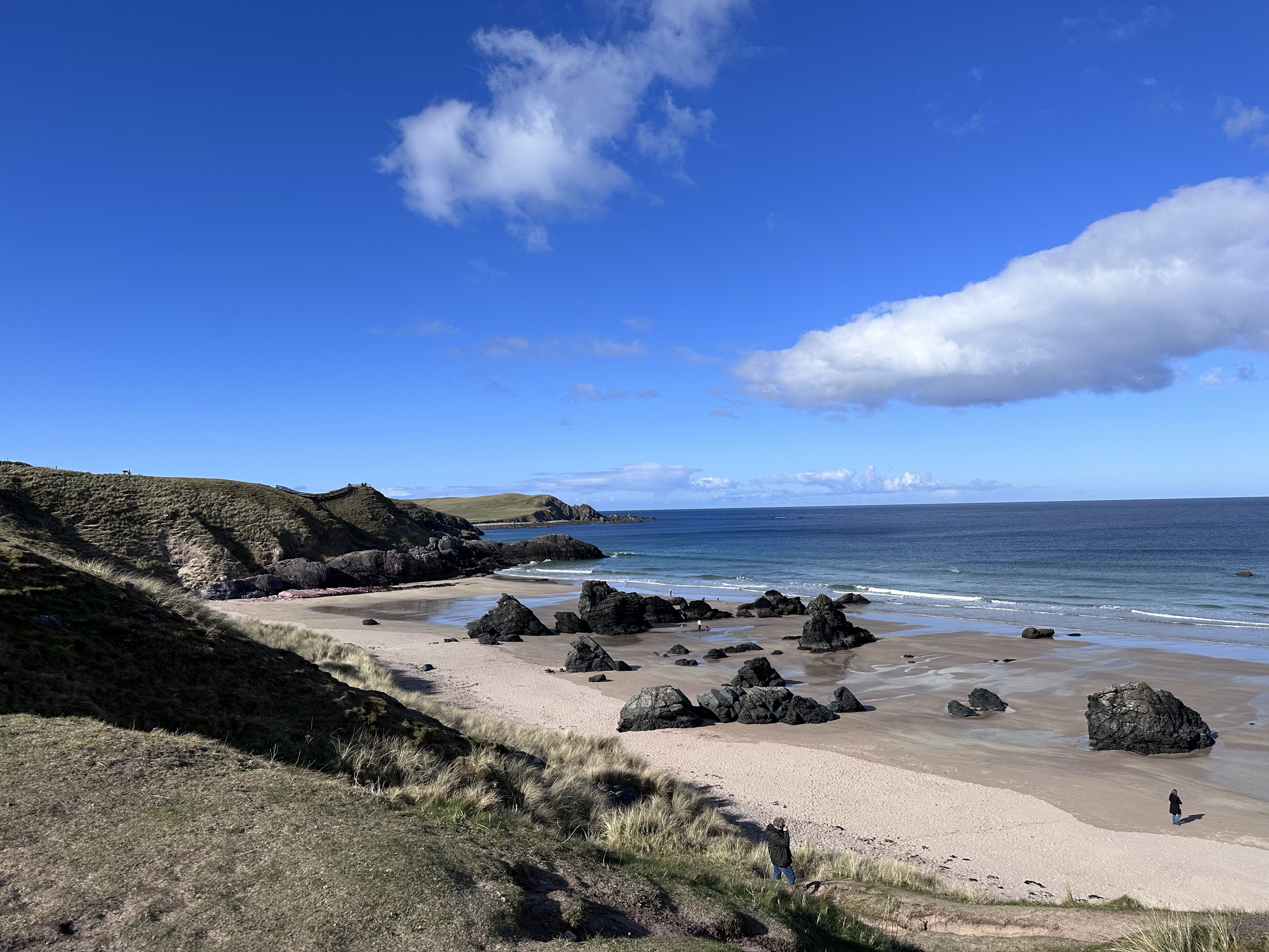 This beautiful beach is along the northern coast of Scotland. As you can see by the photos below, we had a gorgeous sunny day as we were making our drive along this part of the North Coast 500.