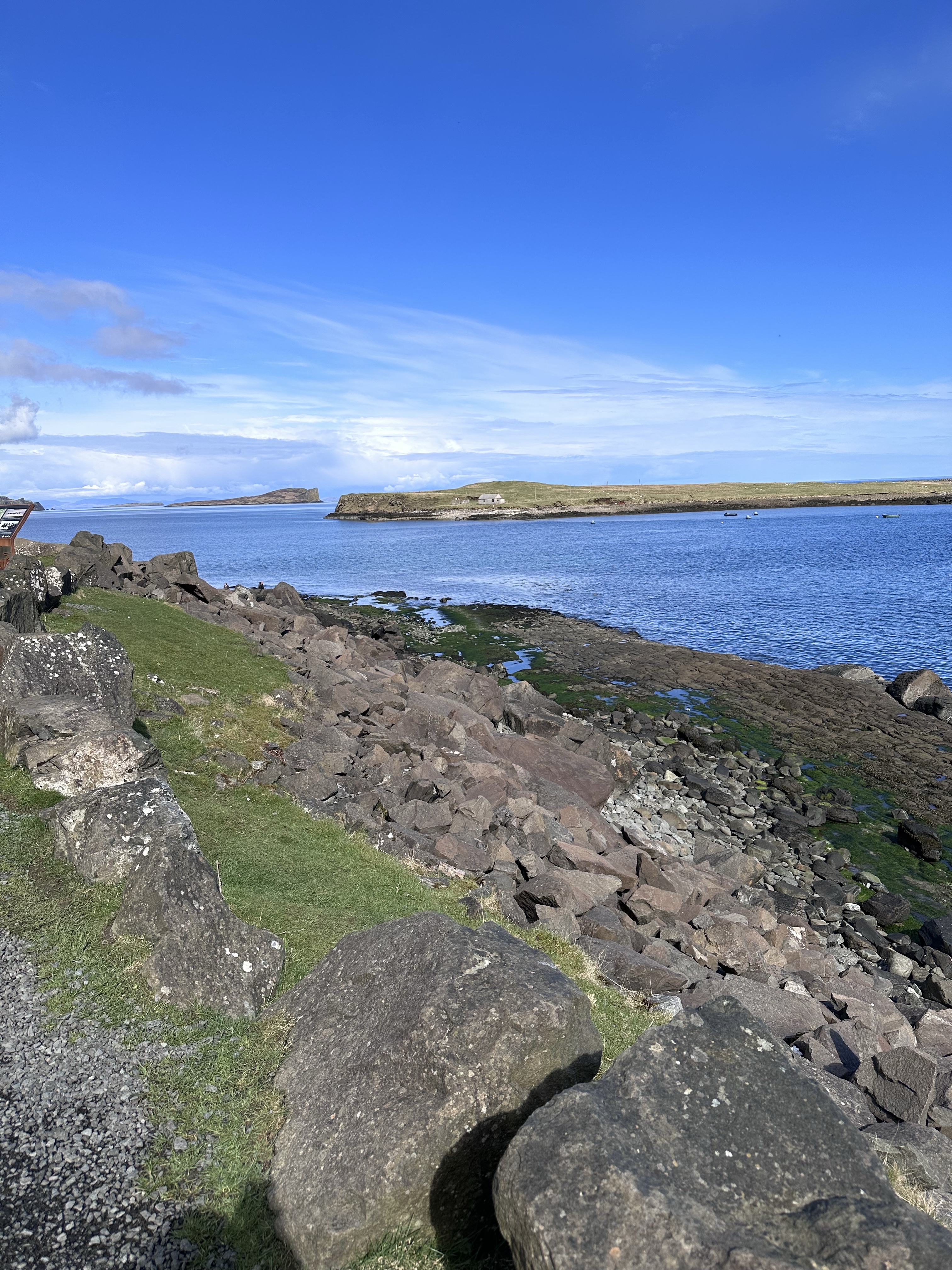 The quaint village of Portree on the Isle of Skye sits along a picturesque harbour formed by Loch Portree. You will find the iconic colorful buildings in the first photo below in just about any article you read about Portree. Both that photo and the middle photo were taken from our hotel across the harbour – we couldn’t have asked for a better view! The last photo below is sea glass that I found along the shore of the harbour.